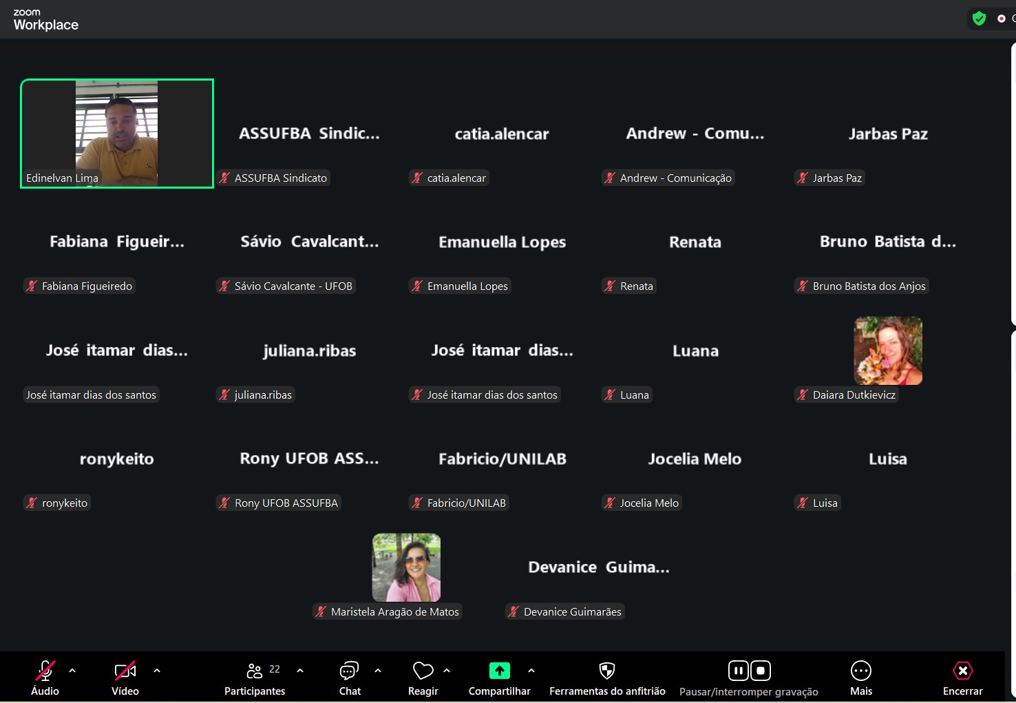 Rony também falou sobre os problemas enfrentados pelos(as) técnicos(as) na UFOB durante as paralisações, quando a categoria tem as horas cobradas nos dias em que paralisam as atividades. Diretores querem que os TAEs compensem as horas dos dias parados posteriormente. A coordenação do Sindicato vai conversar com o reitor para ajustar essa questão e entender por que essa cobrança está sendo feita.