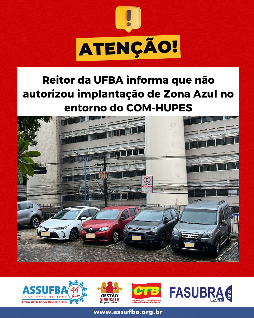 Reitor da UFBA informa que não autorizou implantação de Zona Azul no entorno do Complexo Hospitalar Professor Edgard Santos (HUPES) e determina retirada das placas de sinalização da Zona Azul imediatamente