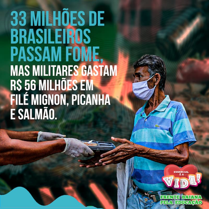 33 milhões de brasileiros passam fome, mas militares gastam R$ 56 milhões com filé mignon, picanha e salmão.