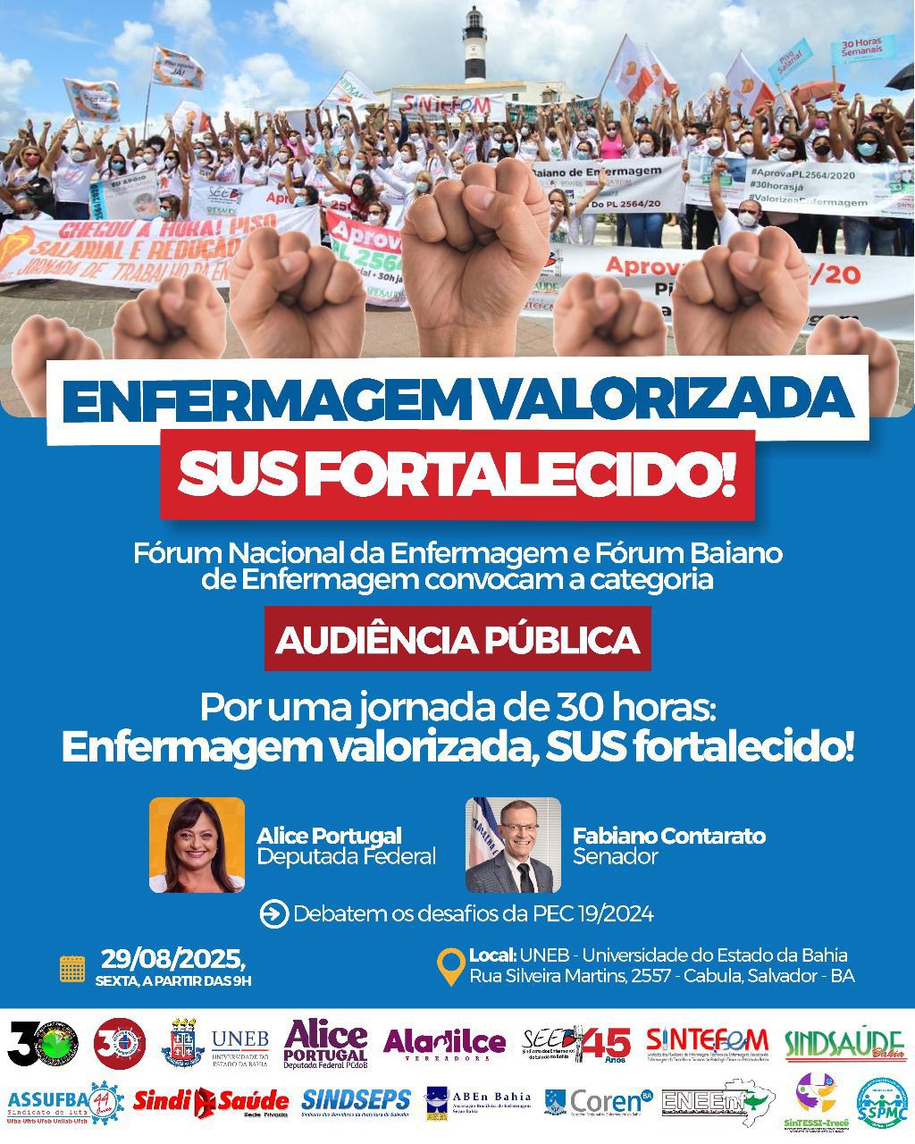 O encontro tem como objetivo reafirmar a luta pela jornada de 30 horas, a valorização da Enfermagem e o fortalecimento do SUS.