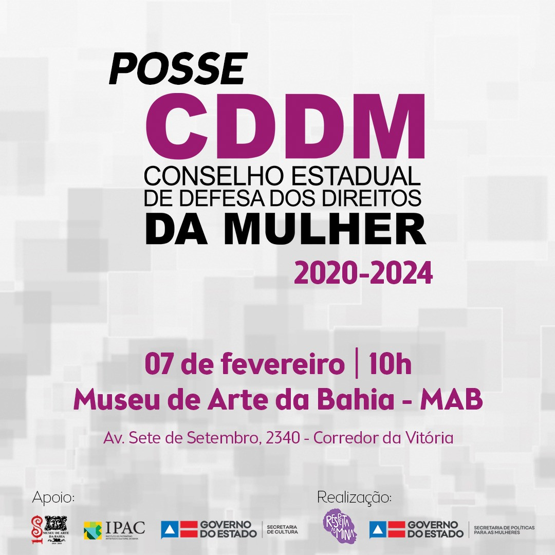 Nesta sexta-feira (07/01) acontece a posse do Conselho Estadual de Defesa dos Direitos da Mulher (CDDM), no Museu de Arte da Bahia (MAB). A representante da CTB-Bahia, Tereza Bandeira dará continuidade a mais um mandato e Flora Lassance suplente, representa a Federação dos Trabalhadores e Trabalhadoras na Indústria Metalúrgica (FETIM).