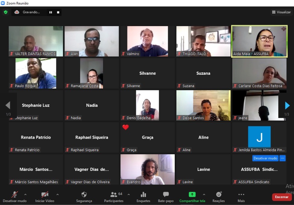 Durante a manhã desta sexta-feira (22/10), os Técnico-Administrativos em Educação da UFRB se reuniram, em Assembleia Geral Virtual da ASSUFBA, bastante participativa, para discutir o retorno das atividades presenciais.
