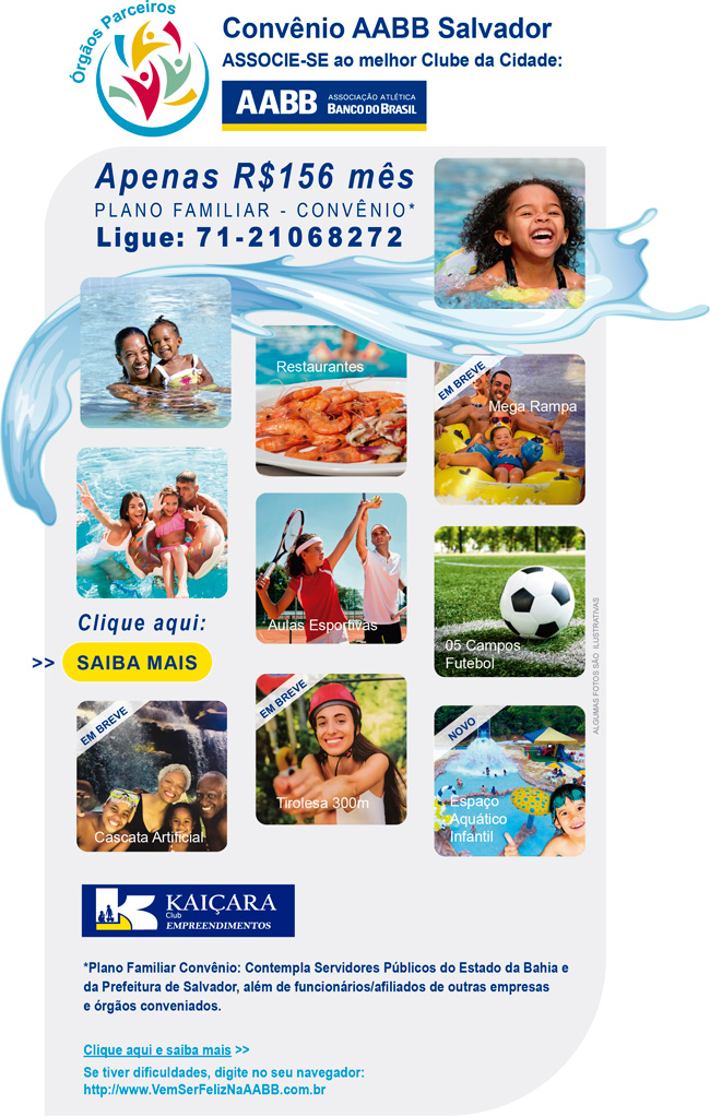 A ASSUFBA Sindicato dispõe de diversas opções de convênio para os associados. Uma das parcerias é com a Associação Atlética do Banco do Brasil (AABB), que oferece acesso à restaurante, aulas esportivas, além de cinco campos de futebol. A AABB em breve terá em suas instalações cascata artificial, tirolesa 300m e espaço aquático infantil.