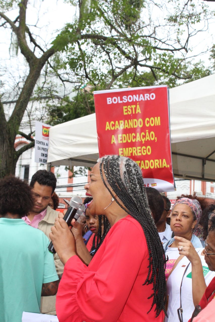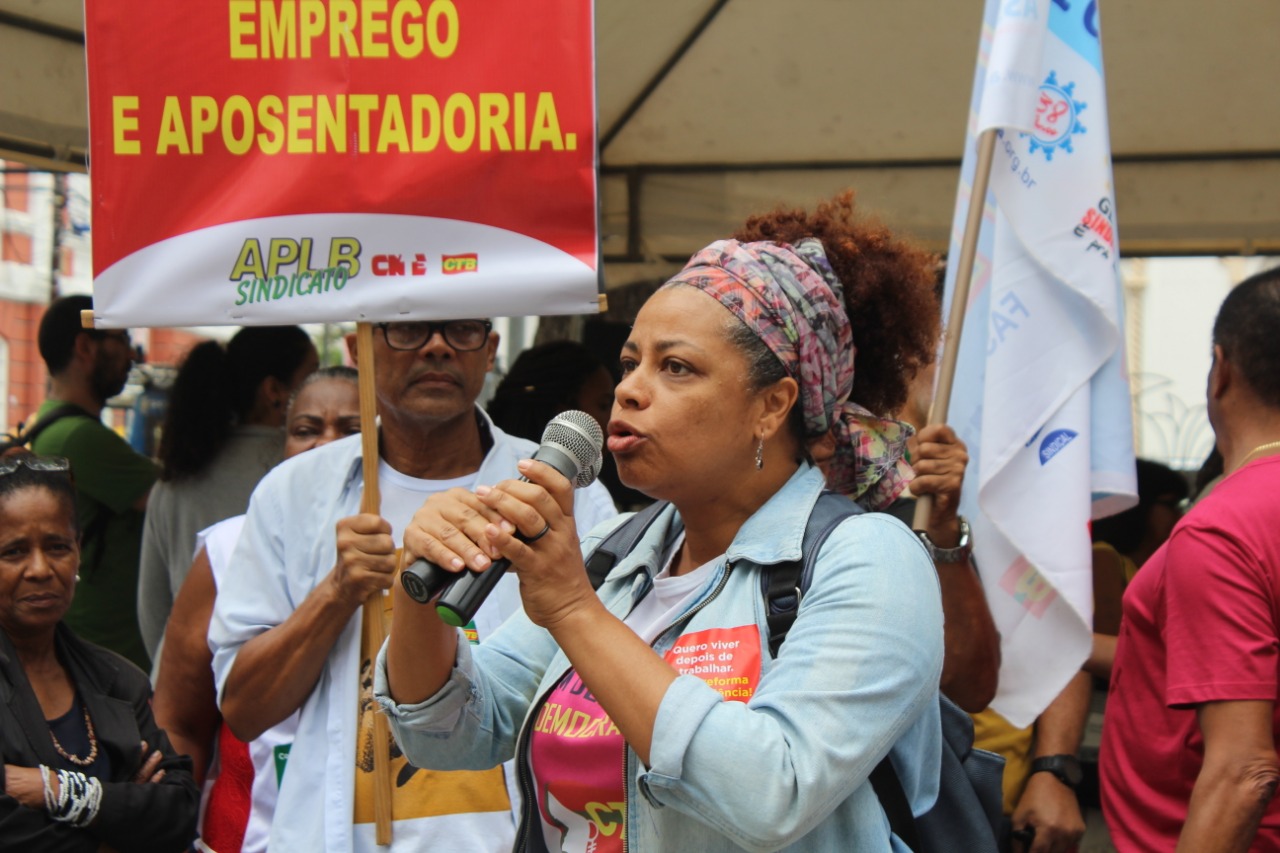 Durante o ato, trabalhadores de diversas categorias e representantes de entidades sindicais tiveram lugar de fala. O apoio da população também foi importante. Para a Coordenadora de Políticas Sociais e Anti-Racistas da ASSUFBA, Lucimara da Cruz, “hoje é um dia de luta. Estamos reunidos aqui na praça do povo para dizer que a gente não aceita o roubo do nosso passado, o assalto do nosso futuro porque a Previdência Social não é propriedade de empresa nem de banqueiros. É patrimônio da população brasileira, dos trabalhadores, os verdadeiros produtores do país, aqueles que carregam o Brasil nas costas”.