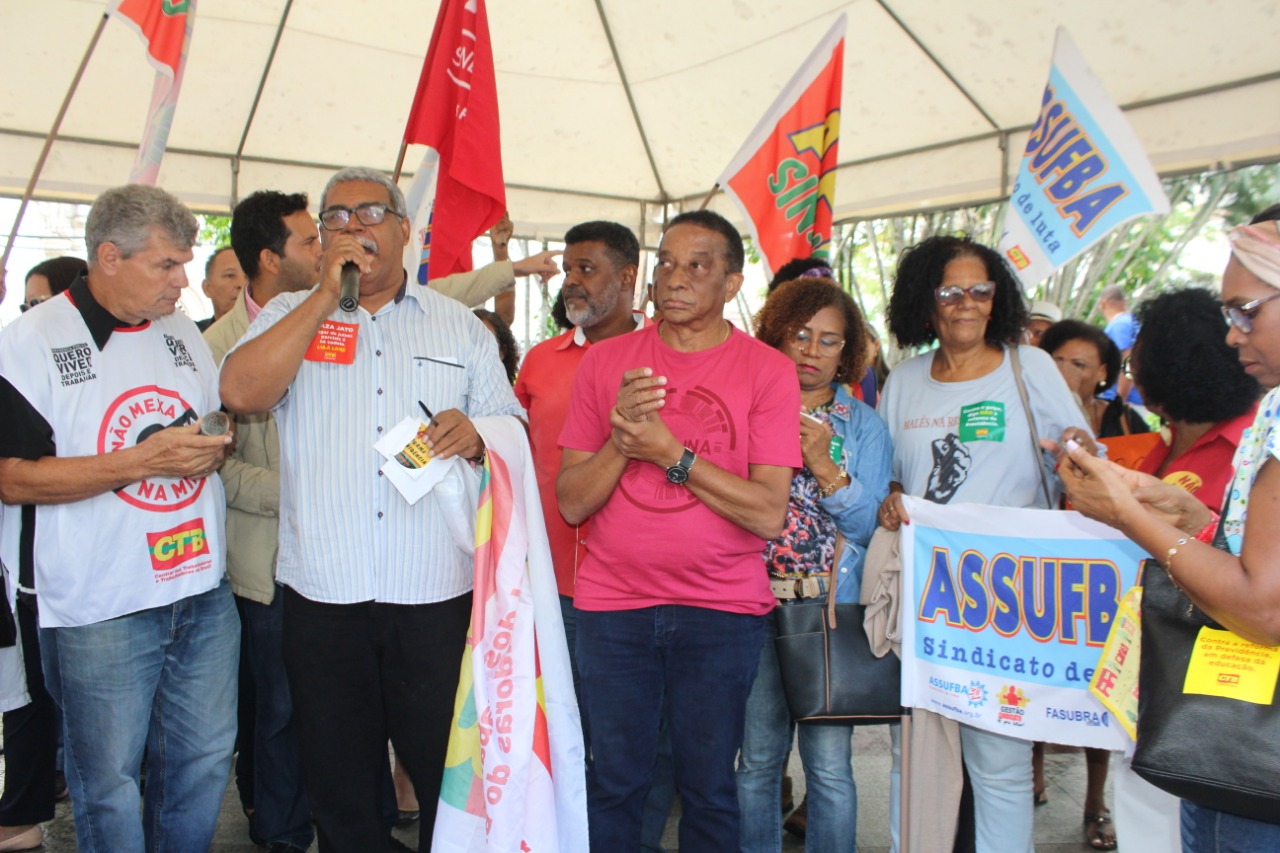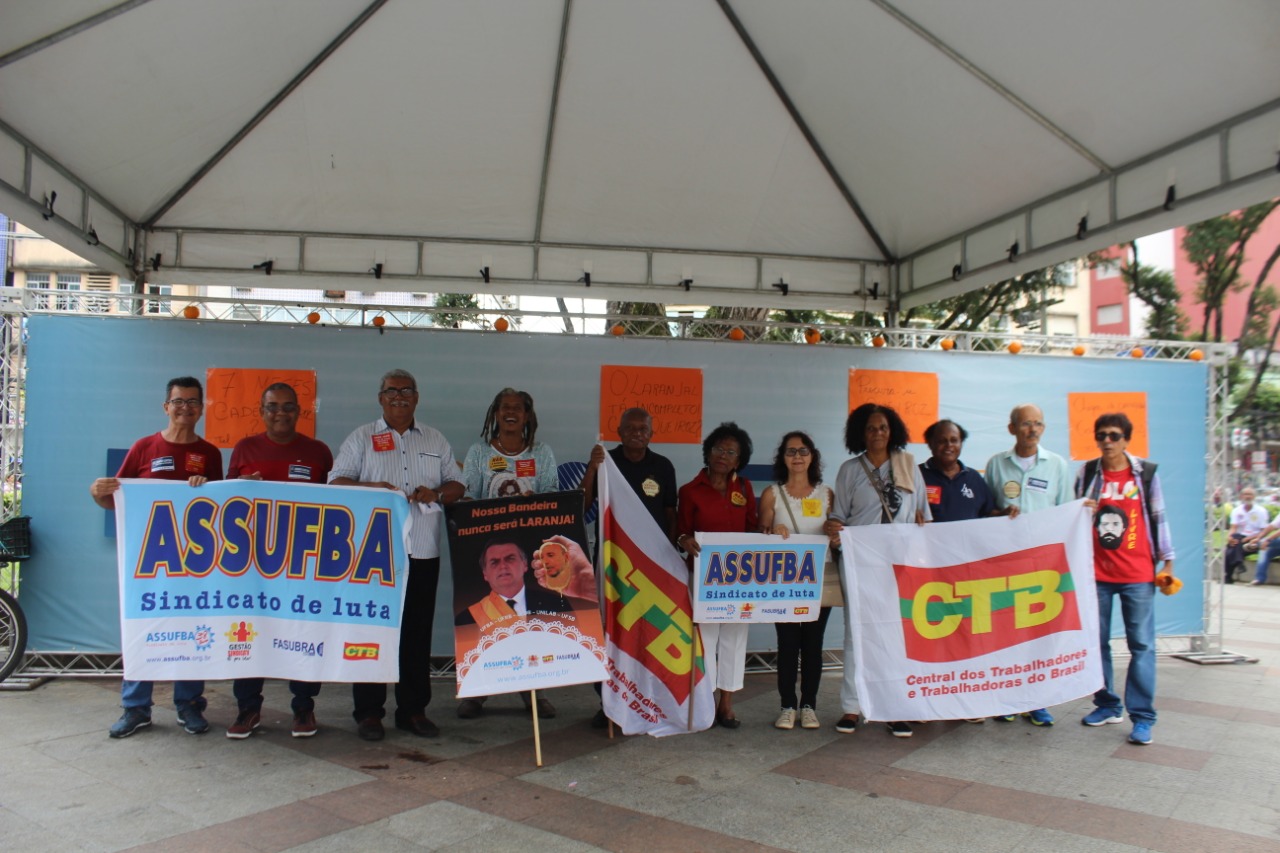 A ASSUFBA esteve à frente do ato contra a reforma da Previdência, na manhã desta quarta-feira (10/07), realizado pela CTB Bahia e sindicatos filiados à Central, na praça da Piedade. O objetivo foi chamar a atenção da população para a necessidade de ampliação da resistência em defesa da aposentadoria.