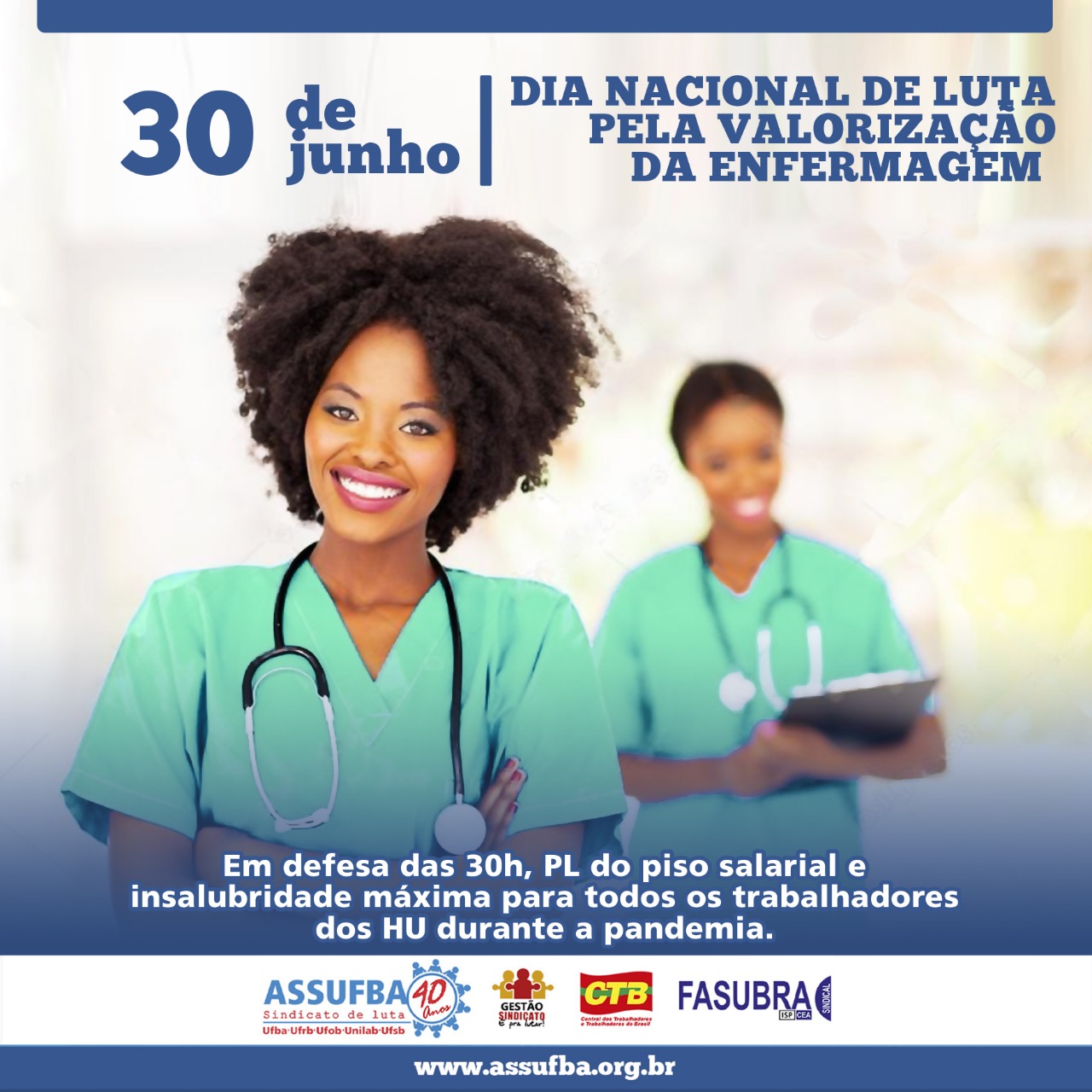 A pressão para que o Projeto de Lei 2564/2020 seja votado no Senado aumenta. Os trabalhadores da enfermagem realizam, nesta quarta-feira (30/06), paralisação nacional de 24 horas em defesa do piso salarial nacional para categoria e da jornada de trabalha de 30 horas semanais. A ASSUFBA apoia a jornada de luta dos profissionais.