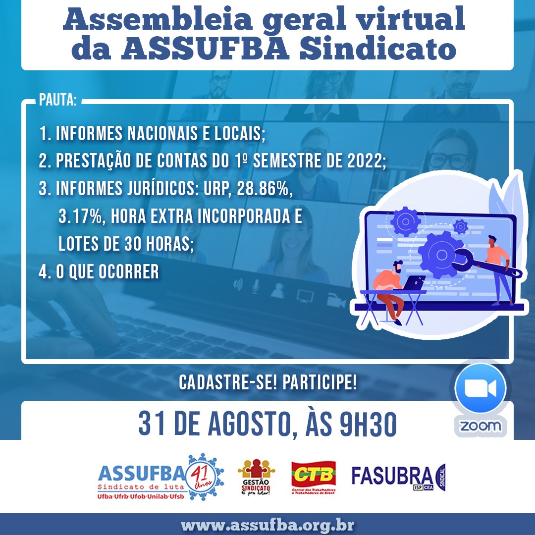 ASSUFBA Sindicato realiza Assembleia Geral Virtual no dia 31 de agosto