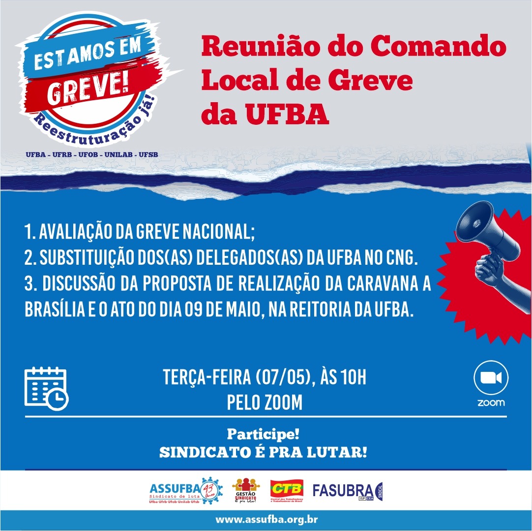 ATENÇÃO TAE! Amanhã (07/05), tem reunião do Comando Local de Greve da UFBA, às 10h