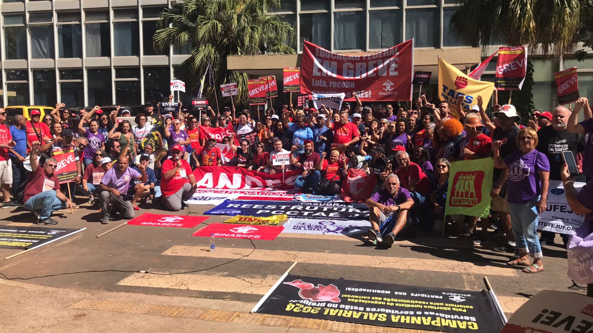 Os delegados do Comando Nacional de Greve da FASUBRA estiveram presentes, destacando a importância da mobilização para alcançar as reivindicações dos trabalhadores da educação.