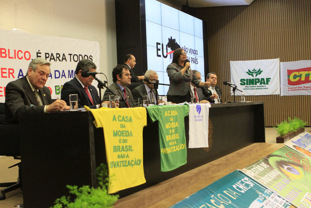 “Coube a nós, à nossa geração, defender não somente nossos empregos e o futuro das nossas famílias, mas também uma empresa que contribui muito para a história da nação. Se não existe soberania sem domínio do território, imagina se o país não fabricar a própria moeda! Esse governo não tem legitimidade para desfazer um patrimônio nacional, eles querem entregar nosso dinheiro para ficar sob domínio do estrangeiro. Mas não permitiremos, a Casa da Moeda é do Brasil”, bradou Junior.