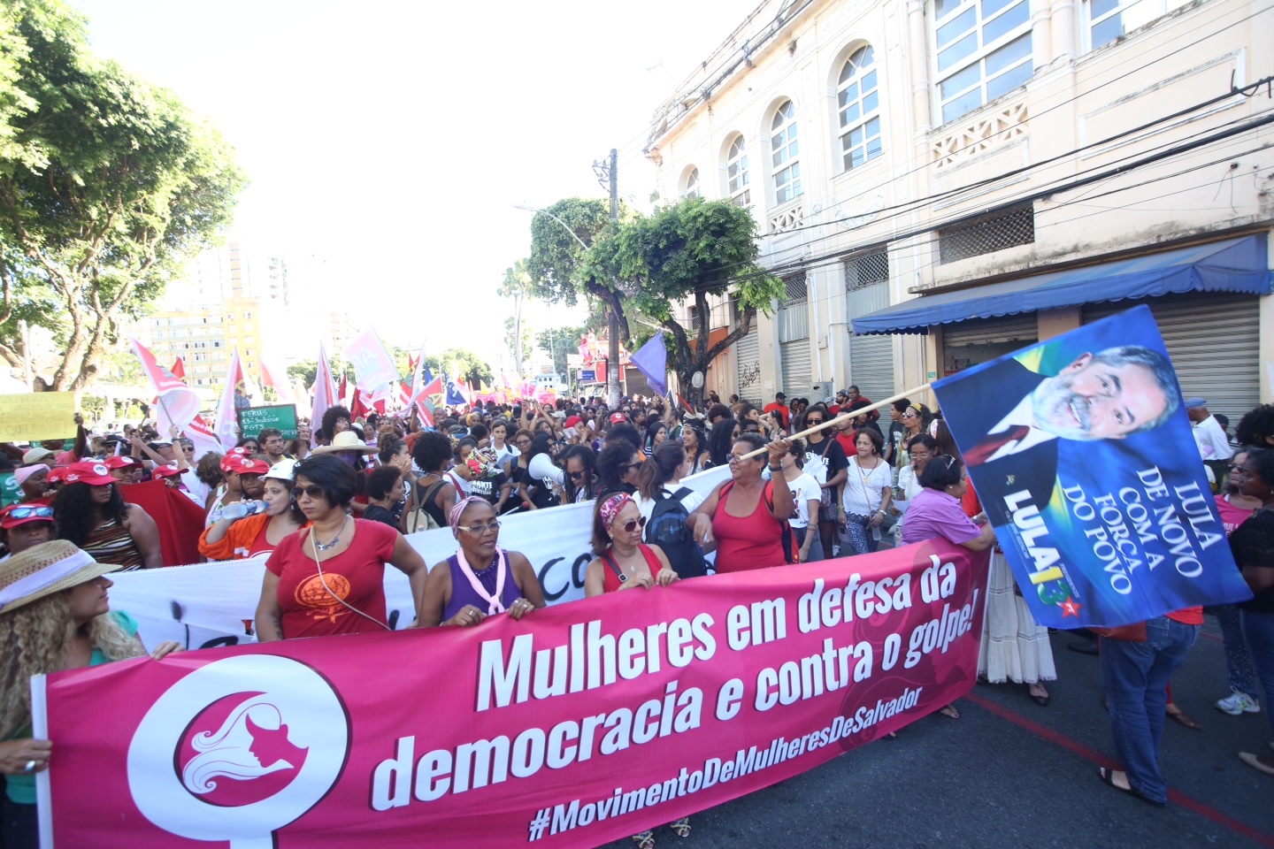 Já passava das 16h, quando mulheres e homens dos quatros cantos de Salvador tomaram as ruas do Centro da cidade nesta terça-feira, 8 de março, em uma grande marcha em defesa da democracia e de mais direitos para as mulheres. Acompanhada por um trio elétrico, a caminhada saiu do Campo Grande e seguiu até a Praça Castro Alves, onde foi finalizada por um ato político com lideranças sociais e políticas.