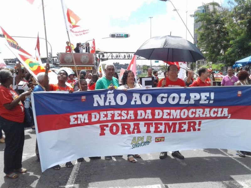 O coordenador da seção baiana da Frente Povo Sem Medo, Walter Takemoto, lembrou também da importância da manifestação. “A realização deste ato significa uma demonstração de que o povo não vai aceitar nenhum o governo ilegítimo do Temer e muito menos as medidas que ele vem anunciando e que vão aprofundar a exclusão e a miséria de grande parcela do povo brasileiro. Nós estamos nas ruas, porque não aceitamos o golpe e queremos que respeitem a decisão popular que elegeu a presidente Dilma. Por isso, independentemente de qualquer decisão do Senado, nós vamos continuar nas ruas, porque nós queremos a ampliação dos direitos em nosso país”, disse.