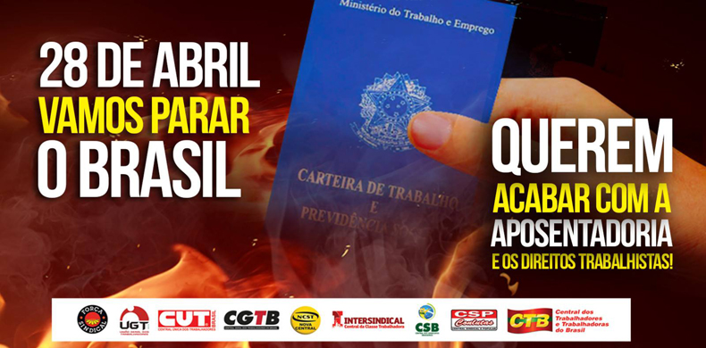 O Brasil vai parar no dia 28 de abril. Trabalhadores e trabalhadoras de inúmeras categorias prometem cruzar os braços contra o desmonte da previdência e a reforma trabalhista.