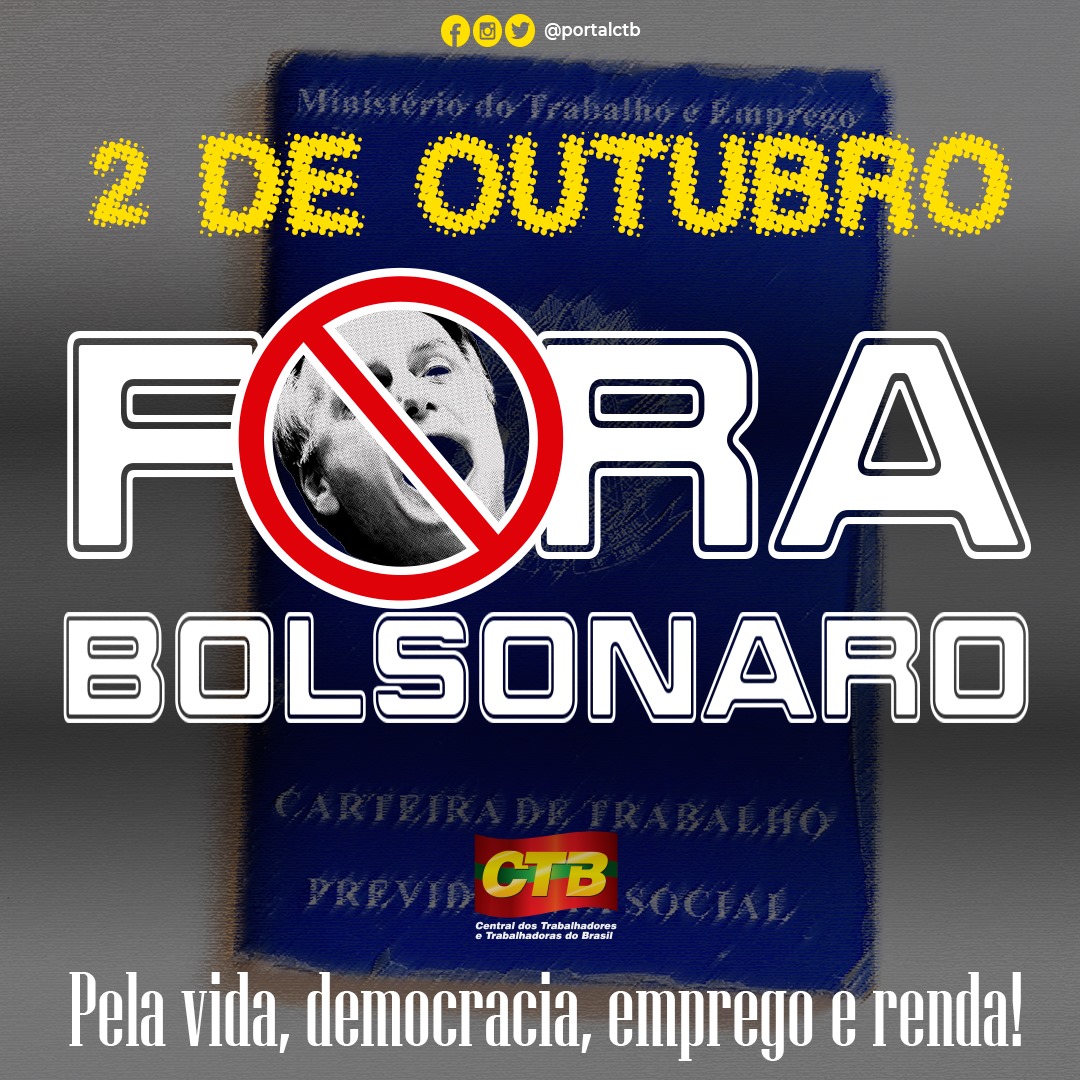 CUT, Força Sindical, UGT, CTB, NCST, CSB, CSP-Conlutas, Intersindical e Pública, de forma unitária, convocam toda a classe trabalhadora aos atos Fora Bolsonaro, no dia 02 de outubro, em todos os Estados do Brasil, e também em outros países.