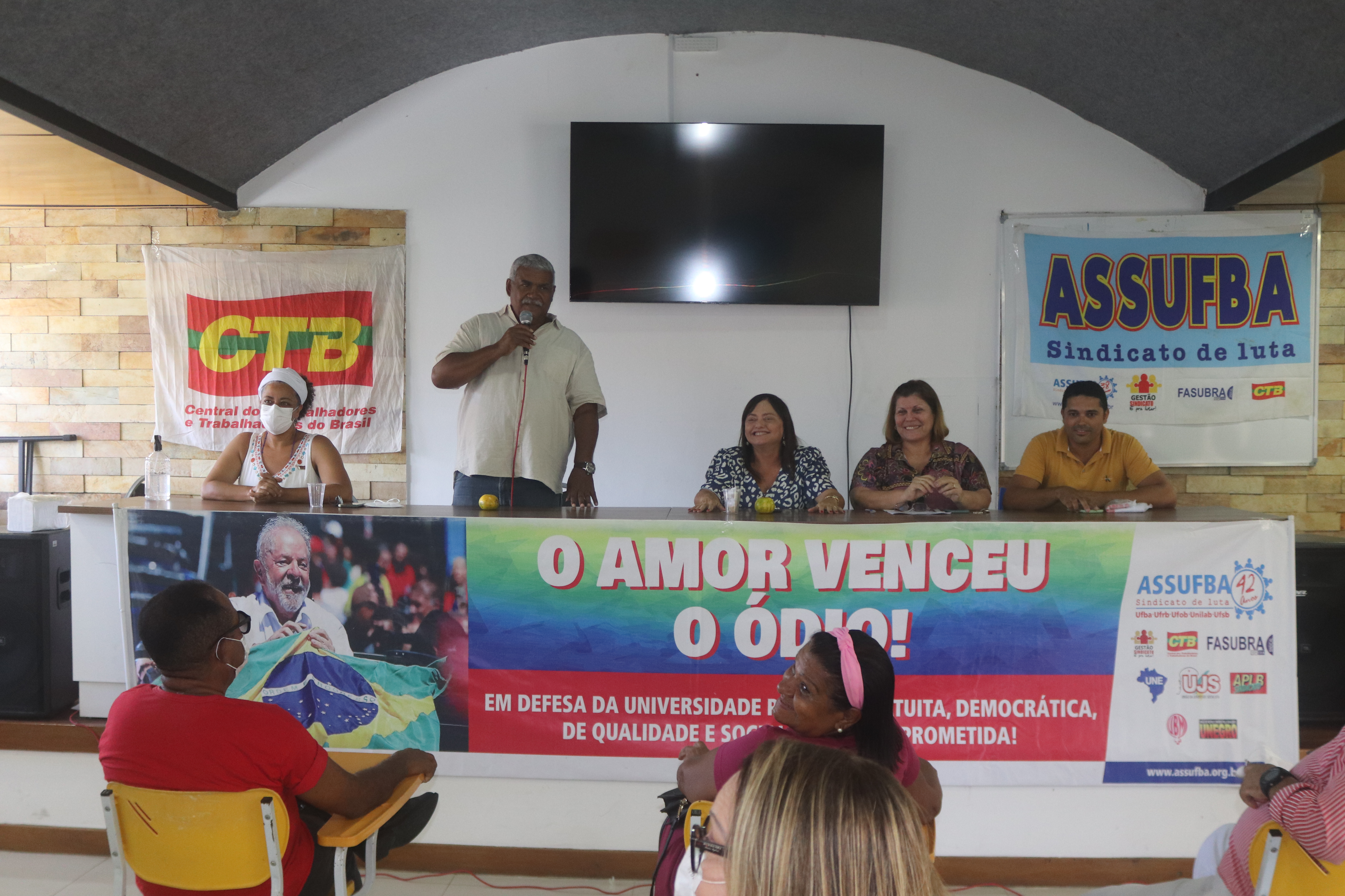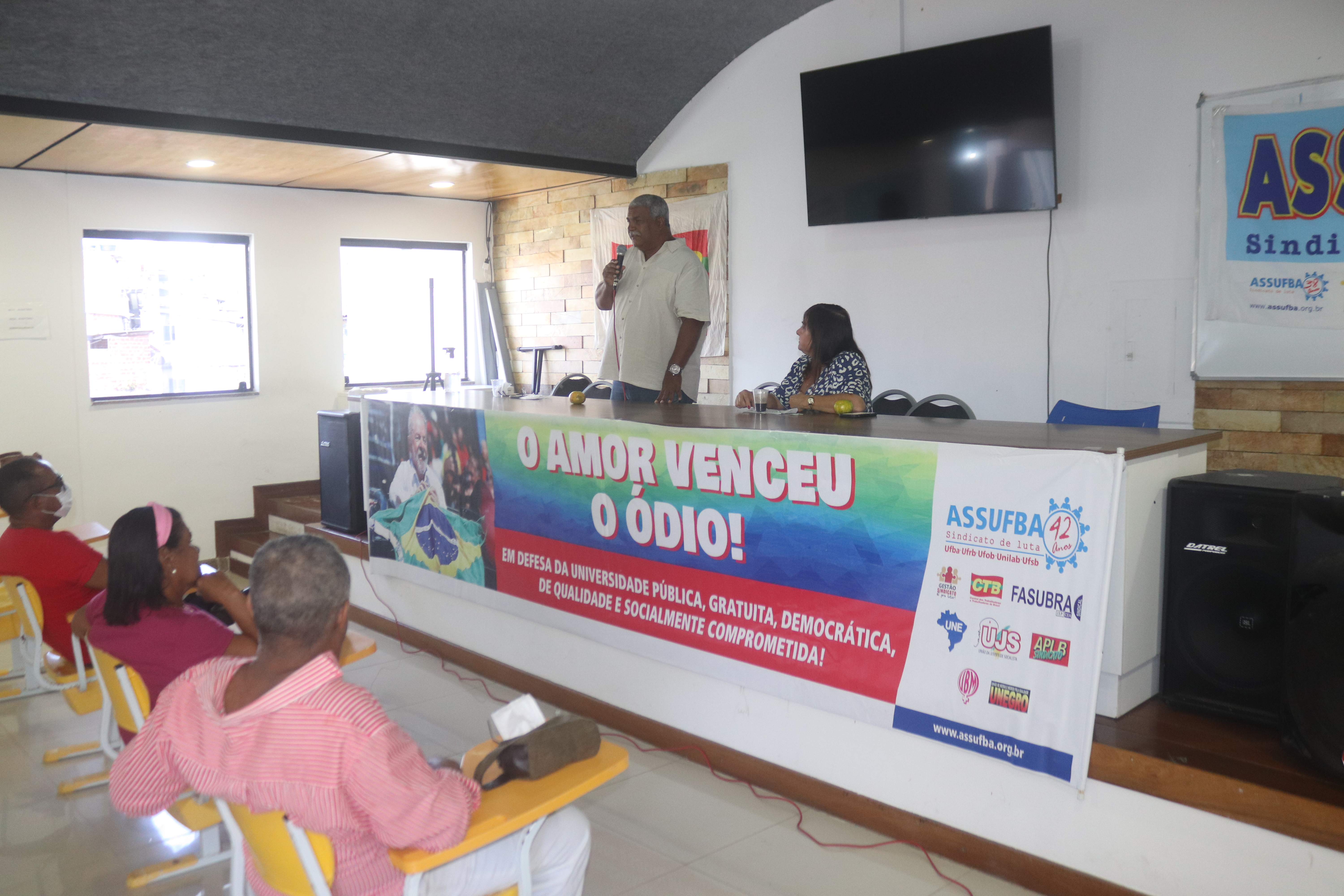 O Coordenador Geral da ASSUFBA, Renato Jorge, reafirmou o empenho da Coordenação na defesa dos interesses da categoria. Uma das principais bandeiras luta é a correção salarial para os(as) servidores(as) ativos e aposentados, que amargam sete anos de dificuldades em função do congelamento de salários.
