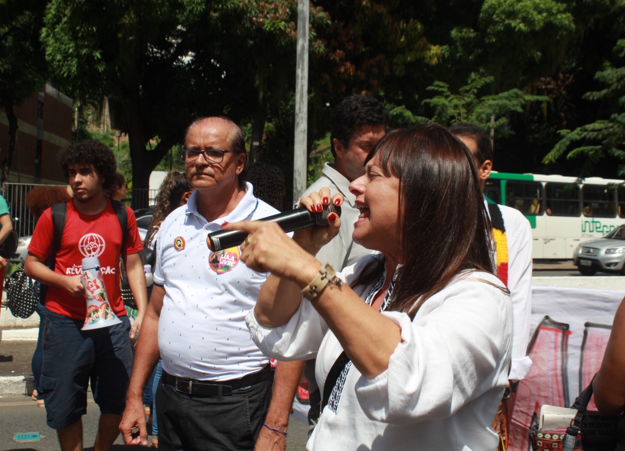 Durante a passeata, ao passar pelo Viaduto do Vale do Canela, a servidora licenciada da UFBA e deputada federal, Alice Portugal, lembrou que no dia 16 de maio vai fazer aniversário que a Polícia Militar, amiga de ACM, mandou invadir a Faculdade de Direito da Universidade. Não é a primeira vez que governos autoritários, de tiranos, tentam calar a voz da comunidade universitária. Não é a primeira vez que a extrema direita coloca as garras sobre o livre pensamento e o desfile democrático”.