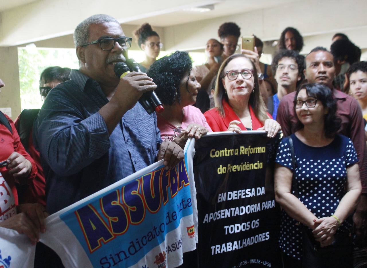 O Coordenador Geral da ASSUFBA, Renato Jorge, falou sobre o perigo que corre a sociedade com um presidente ultraliberal, que coloca em prática um projeto que só atende às elites. “O governo é preconceituoso, odeia pobres e negros. Também despreza a saúde e a educação. Mas, vamos resistir. Estamos juntos nesta luta”. O sindicalista ainda conclamou a todos para a greve da educação, que acontece no próximo dia 15. “Vamos fazer uma revolução”.