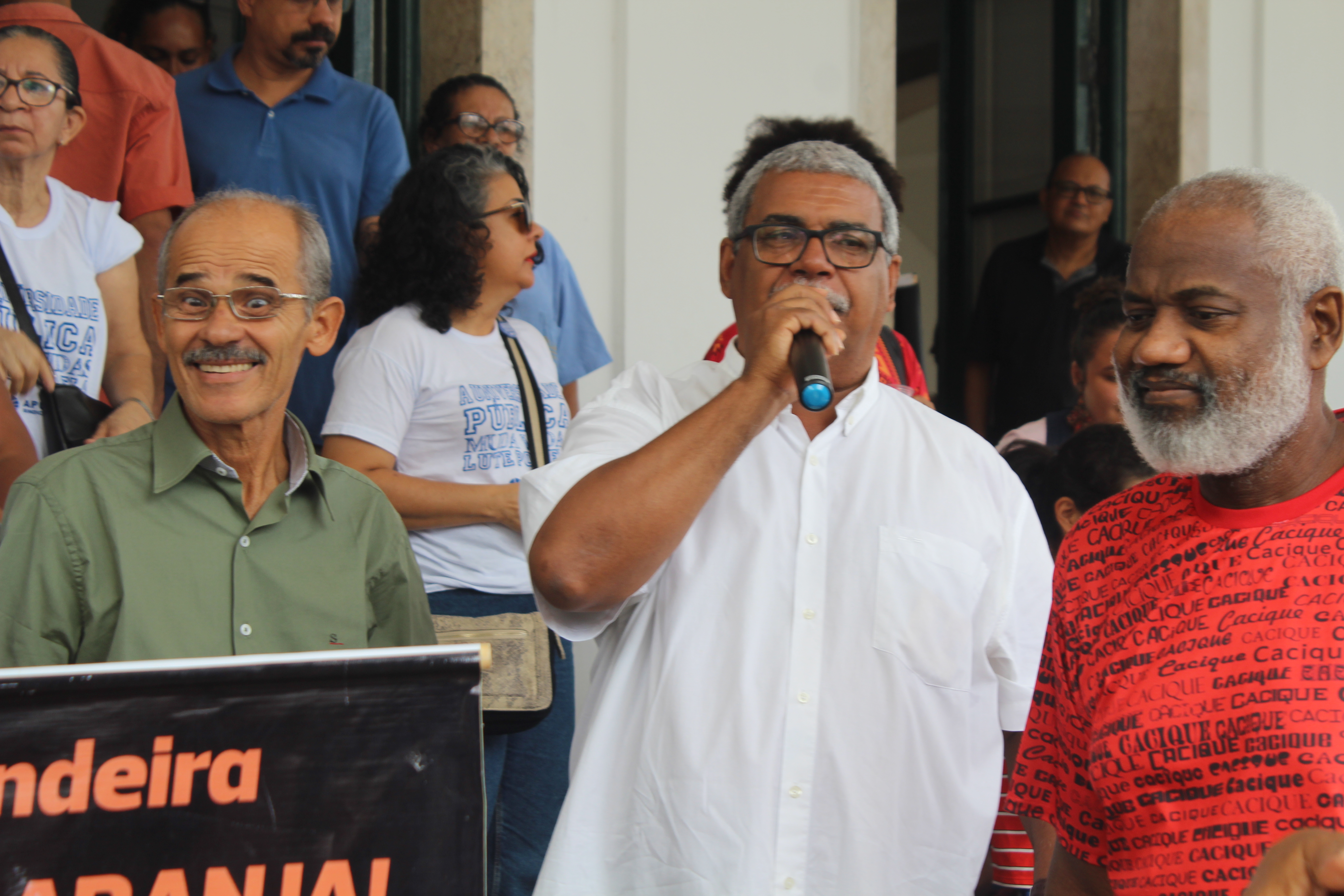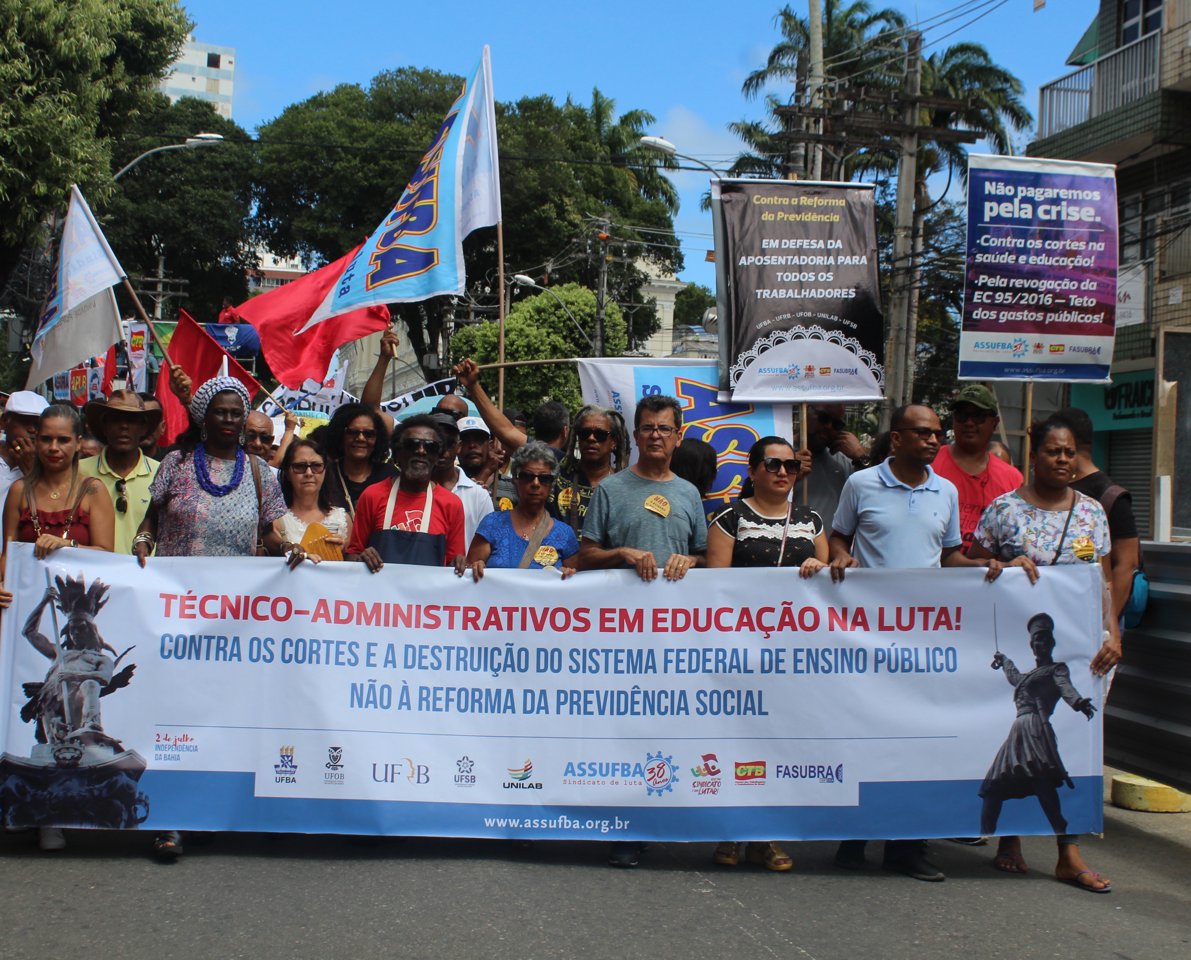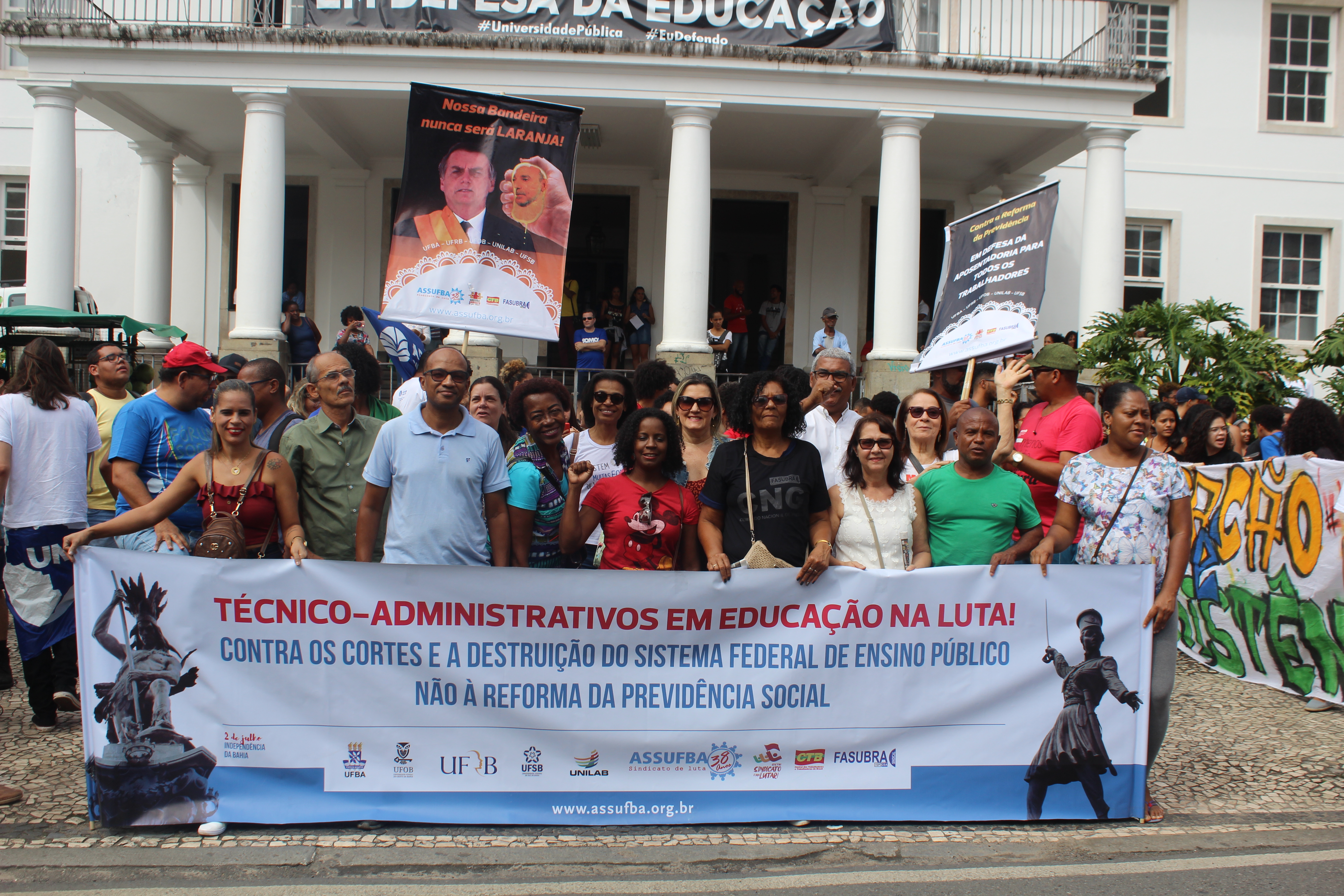 Logo cedo, por volta das 8h desta terça-feira (13/08), a ASSUFBA já ocupava a porta da Reitoria da UFBA para iniciar o protesto, junto com professores e estudantes, em defesa da educação e da aposentadoria. É o grito das ruas em resposta aos desmandos do governo Bolsonaro.