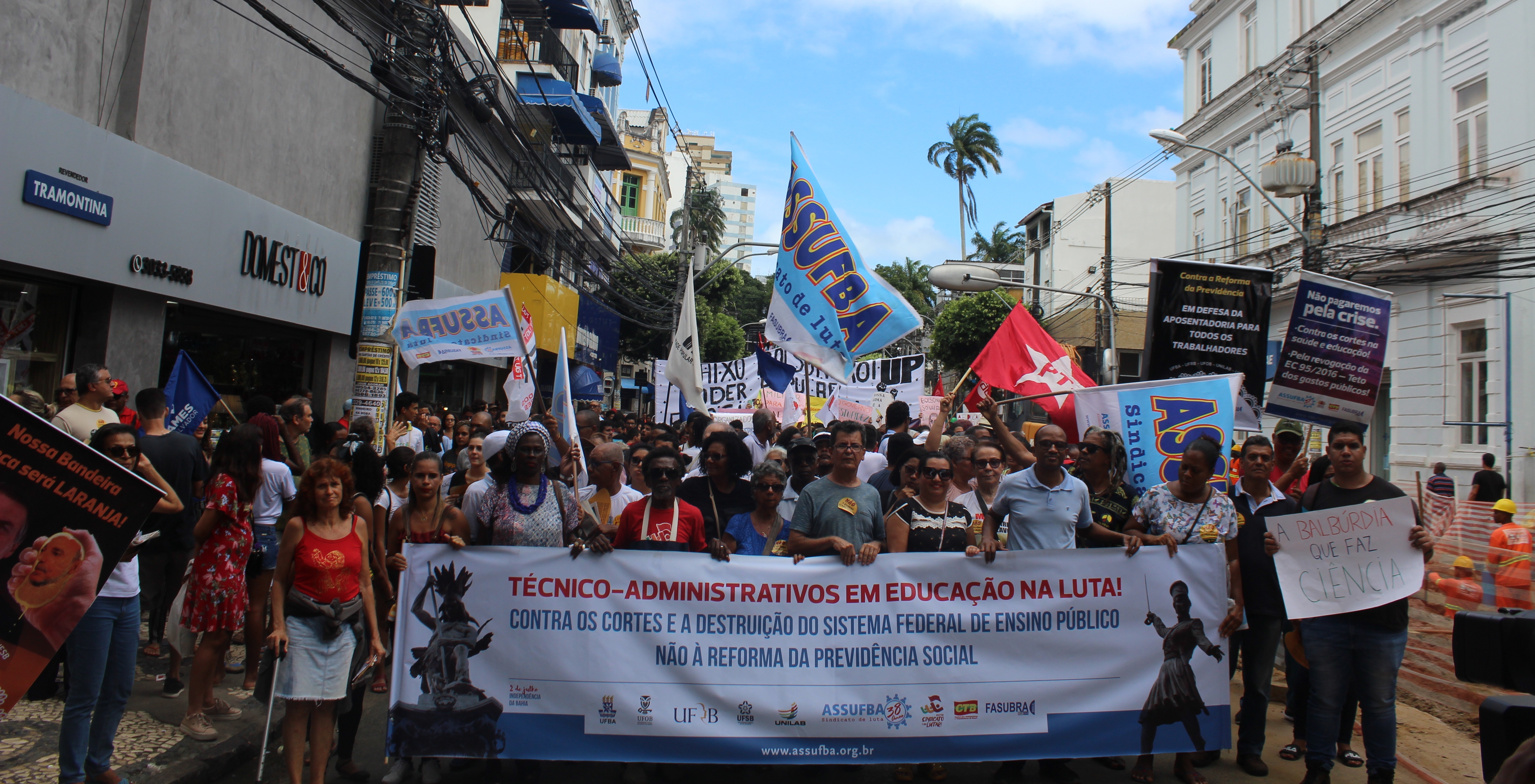 Desde maio, quando o Ministério da Educação anunciou o congelamento de 30% das verbas, a ASSUFBA tem denunciado nas ruas e em outros diversos espaços o desmonte da educação.