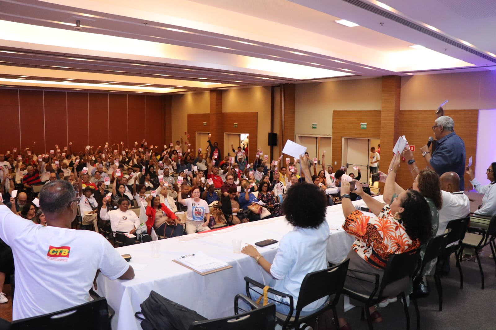 O primeiro dia do Congresso marcou com louvor a luta histórica da classe trabalhadora e a consolidação da CTB como instrumento fundamental na defesa dos direitos, na organização sindical e na resistência frente aos ataques ao trabalhador(a), ao serviço público e às conquistas sociais.