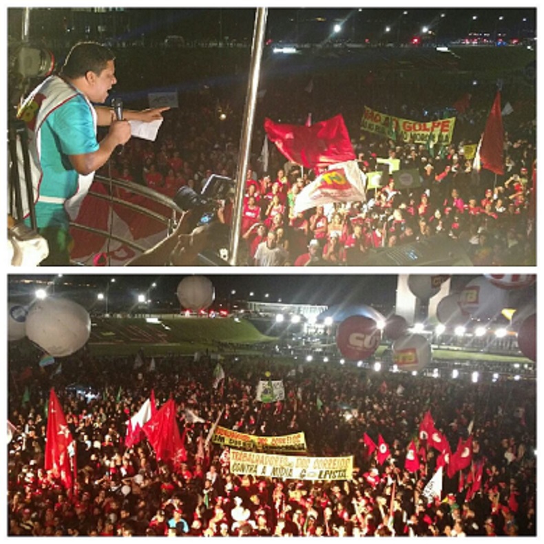 Na multidão, a pluralidade dos movimentos sociais, entidades sindicais, partidos políticos e um público diverso em idade, gênero, religião, tribo. Foi possível observar no olhar e na voz dos participantes, por meio das palavras de ordem – a mais repetida: “Não vai ter golpe” – esperança e disposição para lutar contra a tentativa das forças conservadoras de derrubar um governo eleito democraticamente pelo voto. O recado foi dado – se houver impeachment, vai haver luta e resistência.