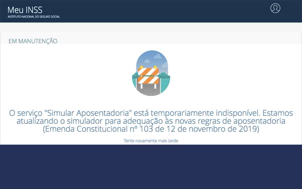 Quase dois meses que as regras da reforma entraram em vigor e ainda não é possível realizar operações como simulação da nova aposentaria no site do Meu INSS. Na página aparece o aviso: “Estamos atualizando o simulador para adequação às novas regras de aposentadoria (Emenda Constitucional nº 103, de 12 de novembro de 2019)”, para informar aos cidadãos.