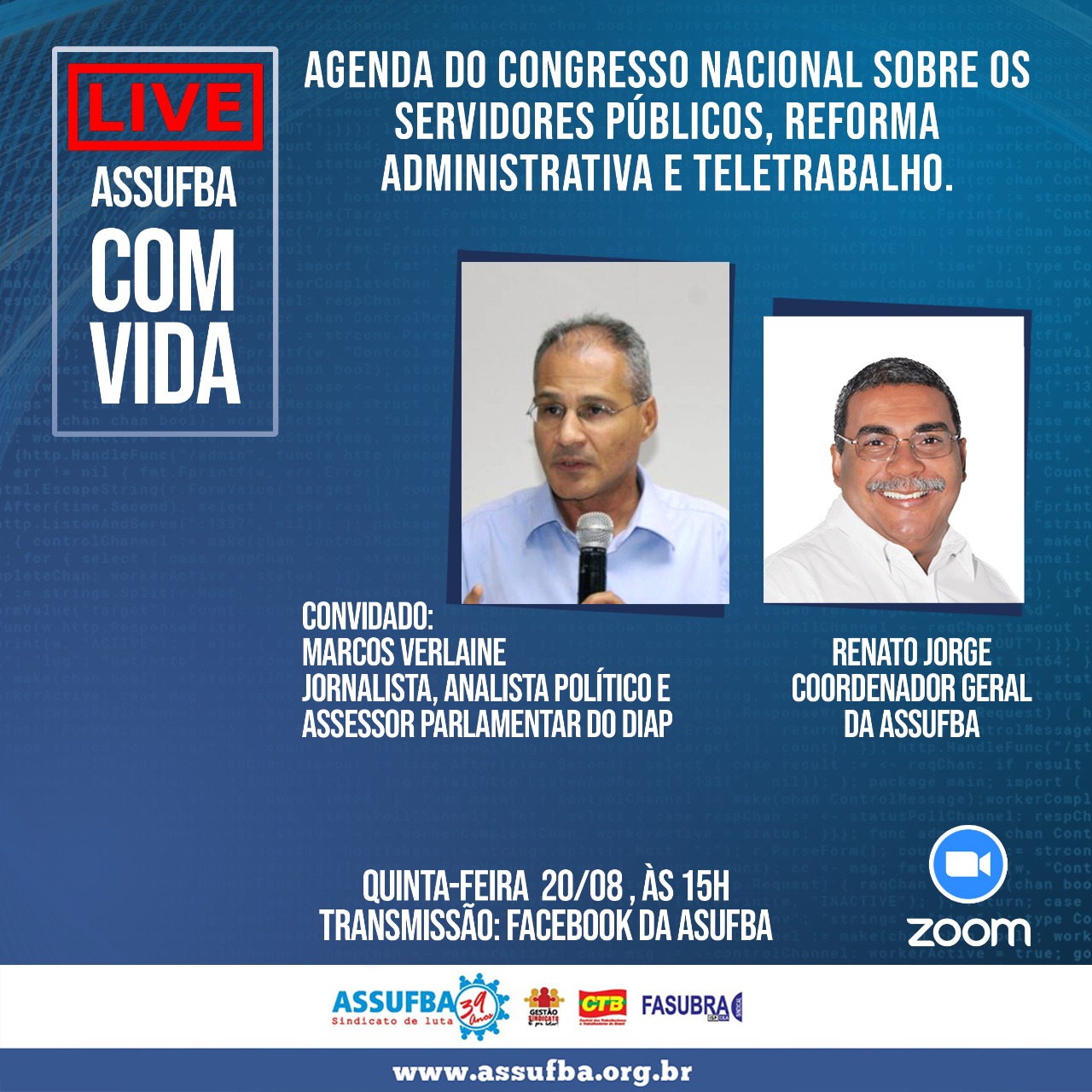 Verlaine vai falar sobre a agenda do Congresso Nacional e os ataques aos servidores públicos, Reforma Administrativa e teletrabalho. A atividade será transmitida pelo Facebook da ASSUFBA. Acompanhe.