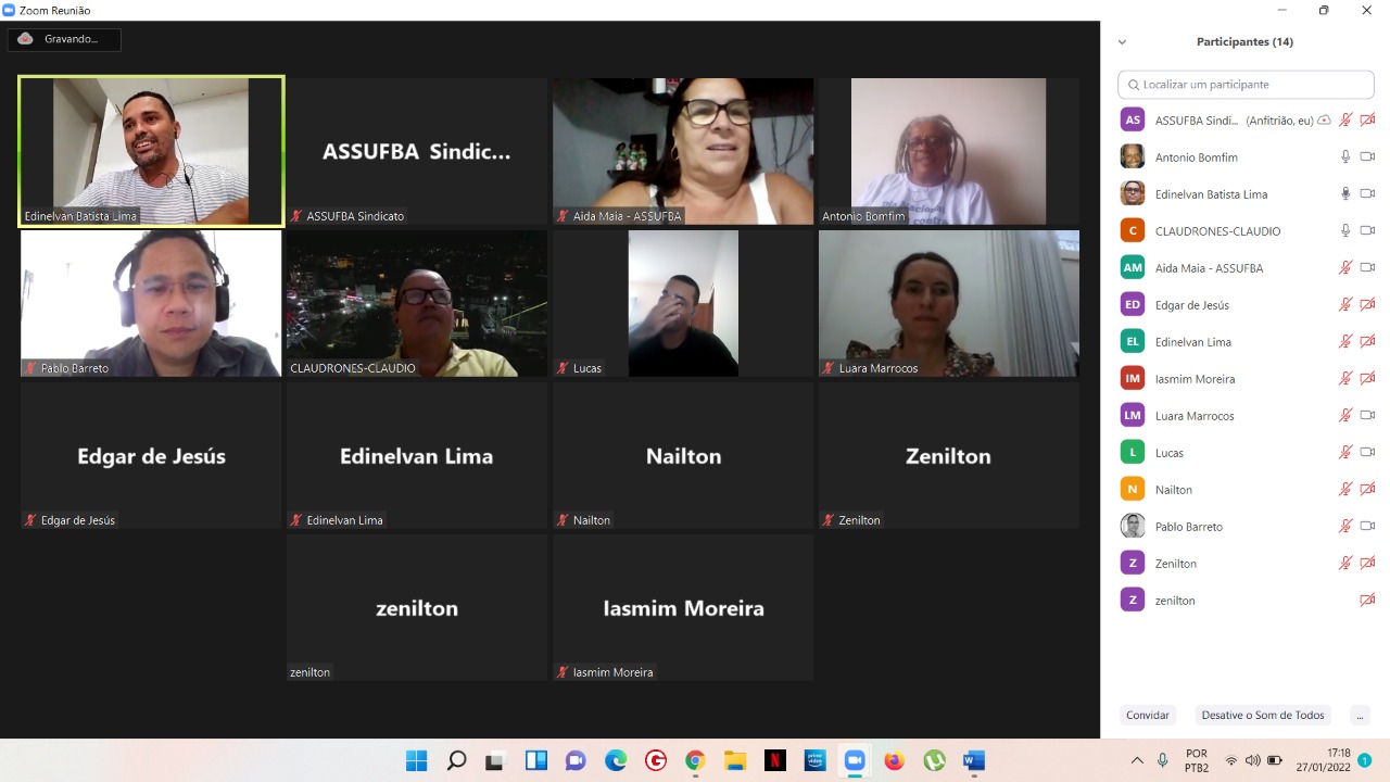 Na última quinta-feira (27/01), a ASSUFBA se reuniu com os servidores da Universidade Federal do Sul da Bahia, em assembleia extraordinária, para elaborar uma Carta Programa de princípios e proposições dos TAEs da UFSB para o processo de consulta à Reitoria, que ocorre entre 7 e 8 de fevereiro do corrente ano. A mesa foi composta pelos coordenadores Edinelvan Lima, Aida Maia, Lucimara da Cruz e Antônio Bomfim.