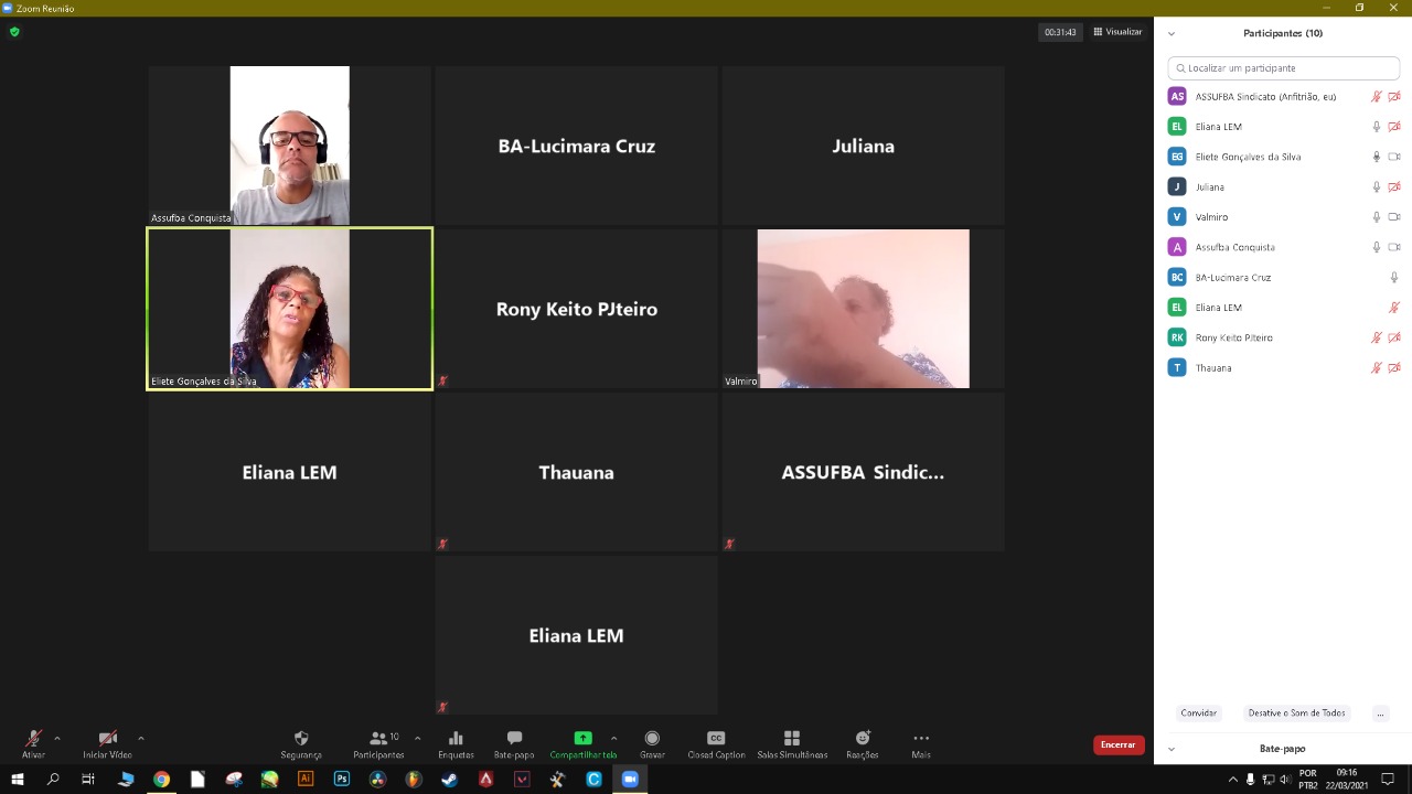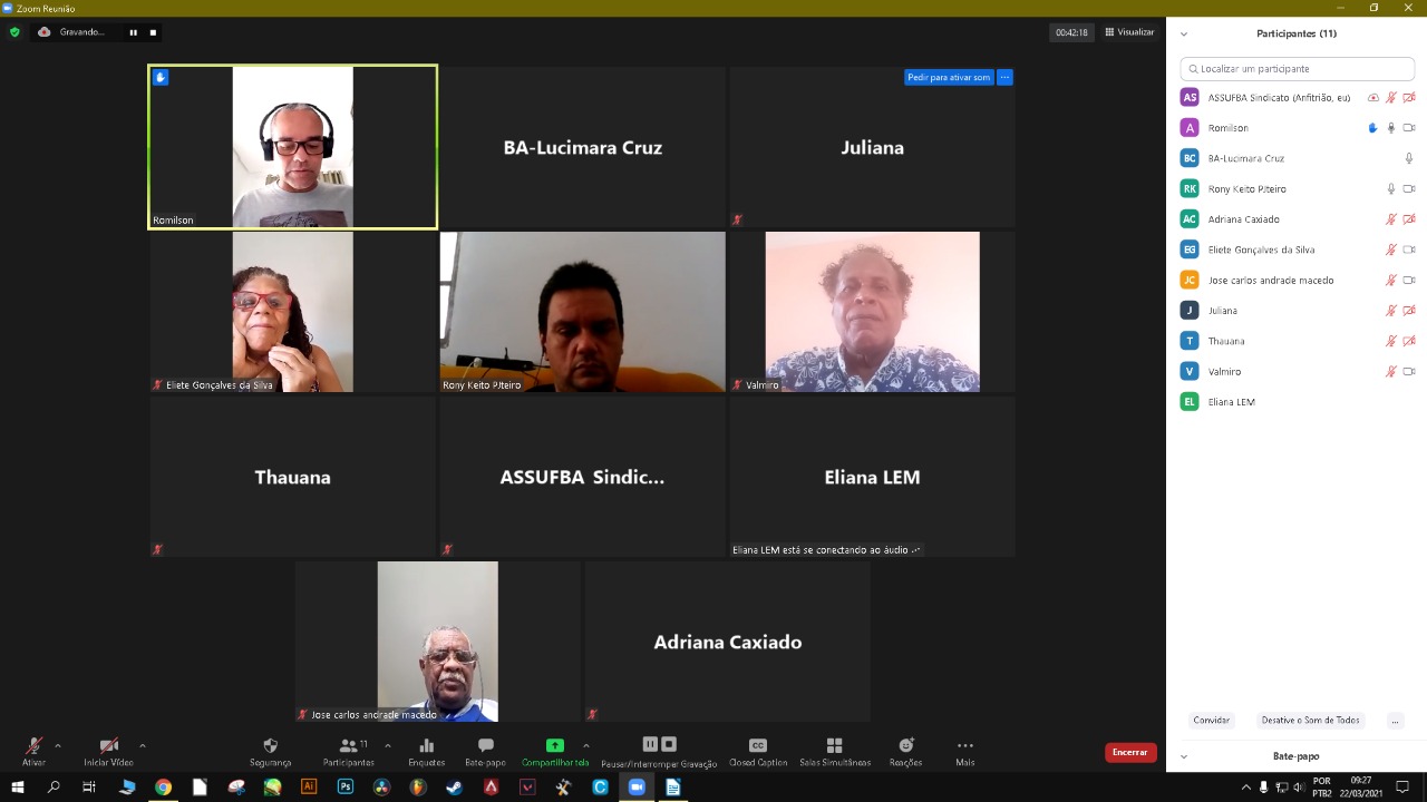 A Coordenação da ASSUFBA finalizou a reunião com a proposição de encaminhamentos das necessidades e demandas debatidas ao longo do encontro. Foram eles: Realizar levantamento das situações localizadas dos servidores e tratar de forma centralizada com o Reitorado; solicitar ao reitor o questionário sobre o perfil de vulnerabilidade dos trabalhadores por setor; Encaminhar o documento criado pela ASSUFBA para o planejamento das atividades presenciais à gestão da UFOB; realizar reunião com servidores dos Campi de Lapa e SAMAVI para levantar situações especificas antes do encontro com Reitor; Realizar reunião por campi; Marcar uma reunião com o reitor e o GT Covid da UFOB; Cobrar plano de contingenciamento geral e de cada campi.