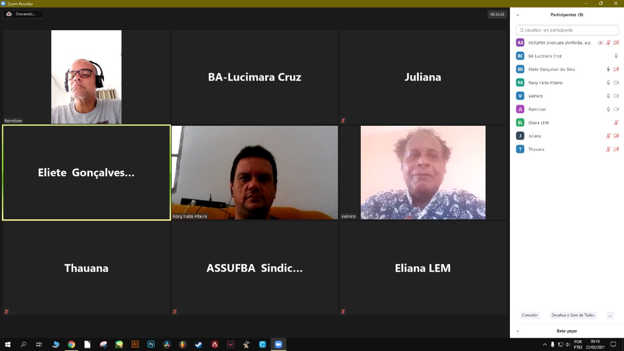 Nesta segunda-feira (22/03), a ASSUFBA se reuniu com os técnicos de Laboratórios da Universidade Federal do Oeste da Bahia (UFOB). No encontro, solicitado pela categoria, foi levantada a discussão das aulas práticas no semestre regular e a suspensão das atividades presenciais devido ao recrudescimento da pandemia.