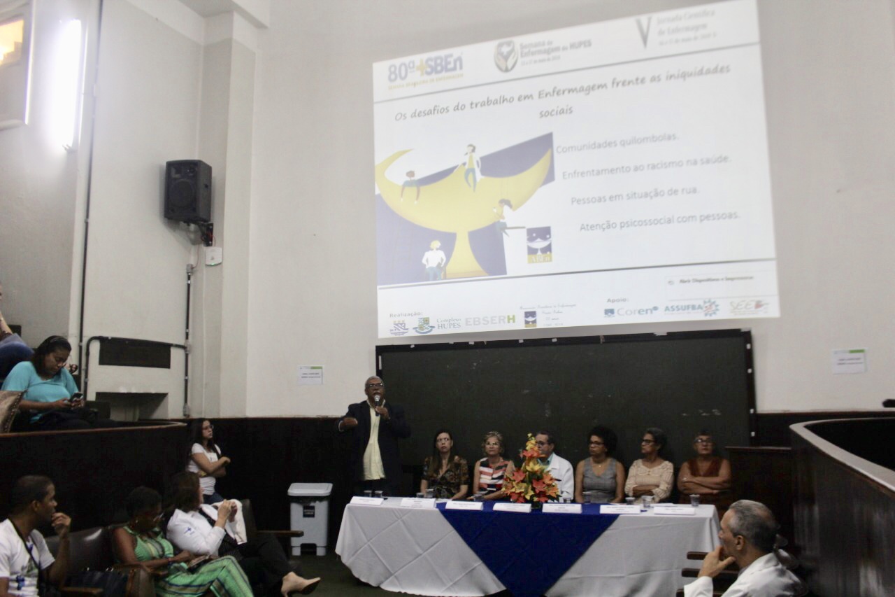 A mesa contou ainda com a presença do superintendente do Hupes, Antônio Carlos Moreira Lemos,  da presidenta da ABEn-BA, Tânia Bulcão, da diretora da Escola de Enfermagem, Carolina de Souza Machado, da chefe de Divisão de Enfermagem do COM-Hupes, Olga Santos, da conselheira do COFEN, Maria Luísa Castro, e da presidente do Sindicato dos Enfermeiros do Estado da Bahia (SEEB), Lúcia Duque Moliterno.