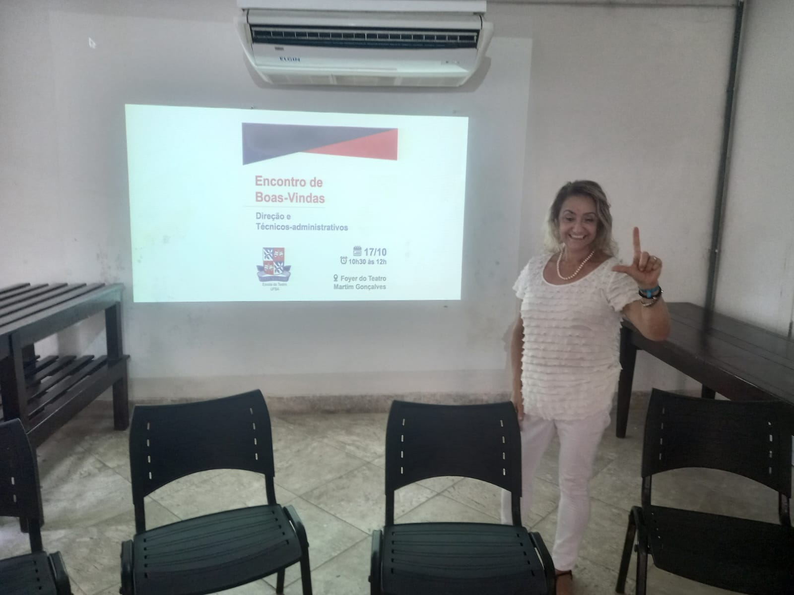A Escola de Teatro realizou com sucesso, no dia 17/10/22, o encontro de boas-vindas ao Professor Luiz Cláudio Cajaíba Soares, Diretor eleito, que junto ao Professor Rodrigo Morais Leite, Vice-Diretor, vão dirigir a comunidade universitária. A reunião contou com uma rica programação onde foram realizados o acolhimento coletivo da equipe, lanche, dinâmica de integração corporal, breve apresentação das metas contidas no Plano de Gestão voltadas para a categoria, momento de escuta da comunidade pelos(as) Técnico(a)-administrativos(as) em Educação, quando aconteceu uma análise crítico-reflexiva muito positiva pelos(as) presentes sobre o momento atual em que a sociedade se encontra.
