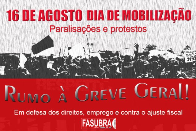 Aprovado na Reunião Ampliada do Fórum das Entidades Nacionais dos Servidores Públicos Federais (Fonasefe) no dia 10, o objetivo é construir mobilizações com paralisação e protestos públicos em todo país com o eixo: Em defesa dos direitos, emprego e contra o ajuste fiscal (PLP 257/16, PEC 241/16 e PL 4567/16).