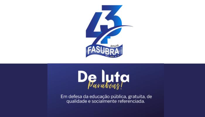 A ASSUFBA parabeniza a FASUBRA pelos 43 anos de resistência e luta por um Brasil melhor, uma sociedade justa e igualitária, e por um serviço público de qualidade.