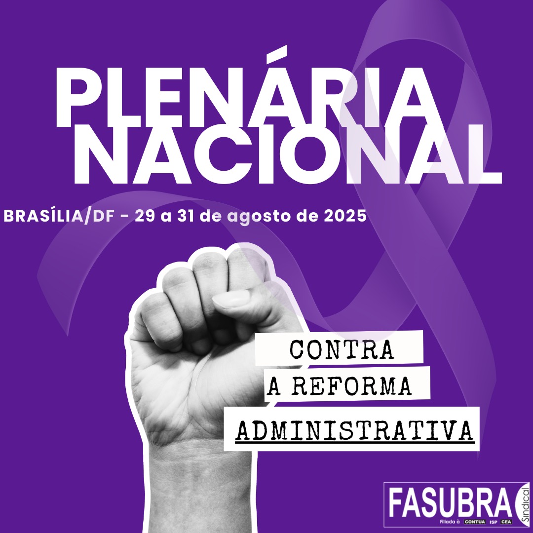Nos dias 29, 30 e 31 de agosto, a FASUBRA Sindical realizará a Plenária Nacional, em Brasília/DF, reunindo delegados(as) representando as entidades de base. O encontro terá como objetivo debater a conjuntura atual e deliberar sobre temas de interesse da categoria, definindo, a partir dessas discussões, os encaminhamentos para o próximo período.