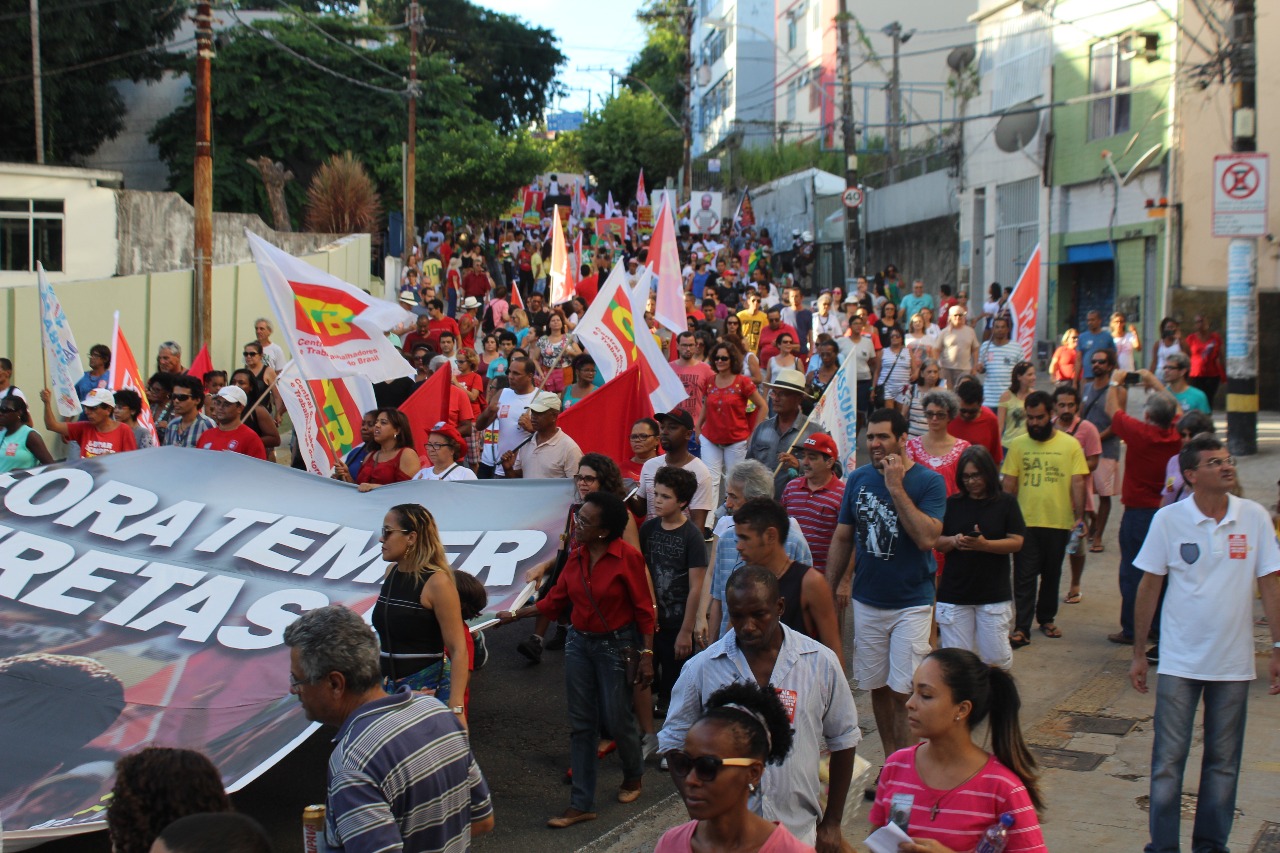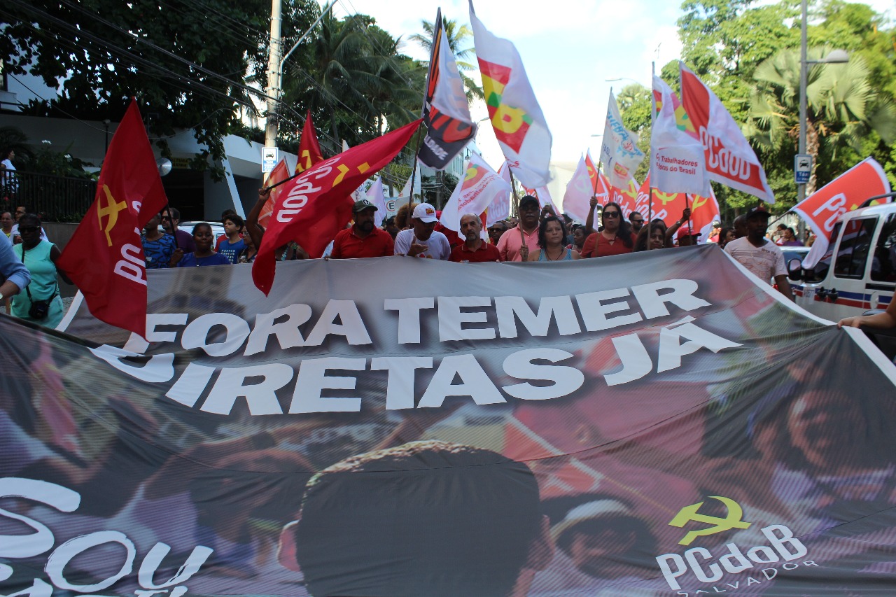 Dando continuidade à agenda de protestos, a coordenação da ASSUFBA, os técnico-administrativos em Educação das Universidades Federais da Bahia e trabalhadores de diversas categorias marcharam, neste domingo (21/05), do Centro de Salvador até o Farol da Barra. Bandas de percussão e carro som embalaram os gritos de “Fora Temer” e “Diretas Já”.