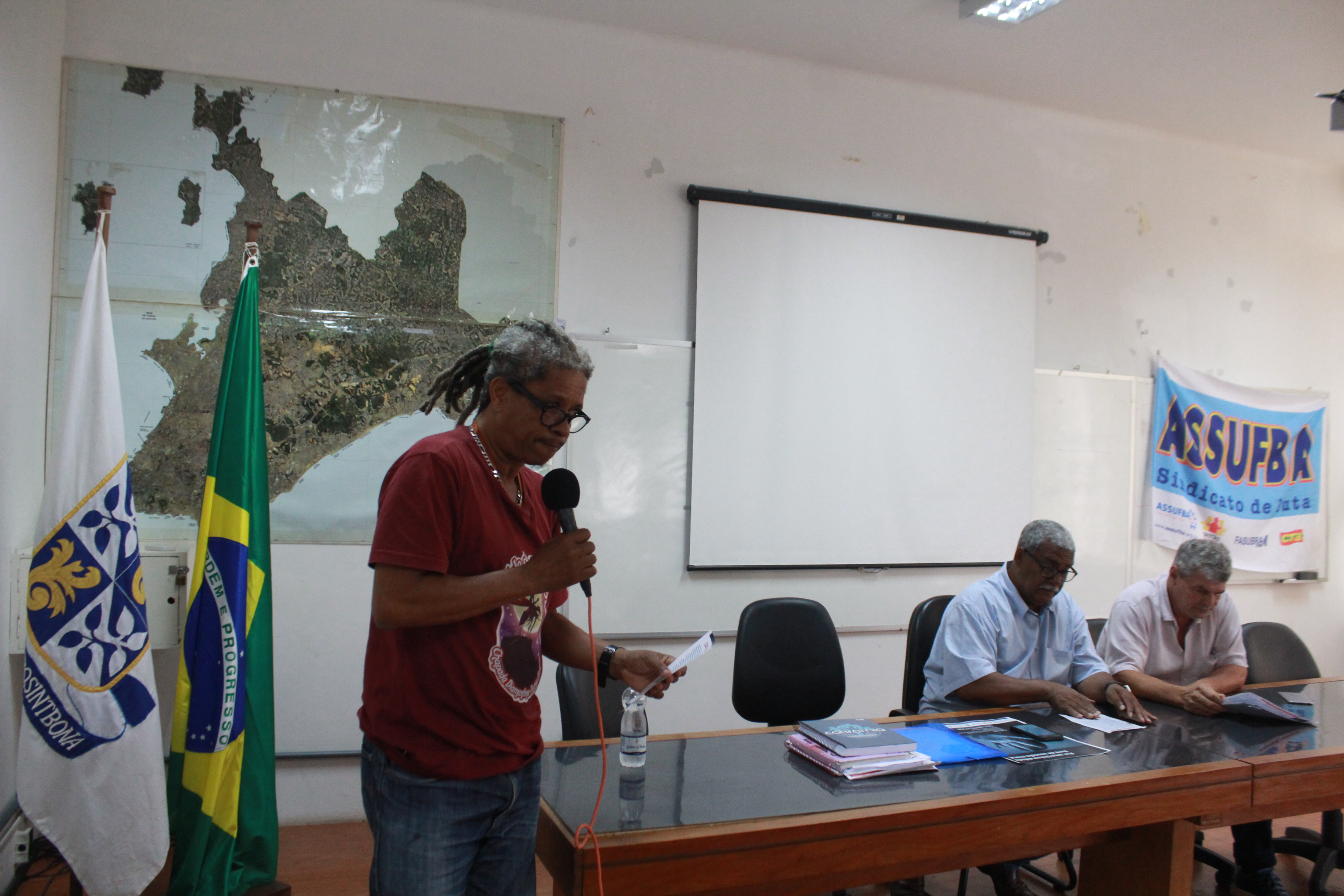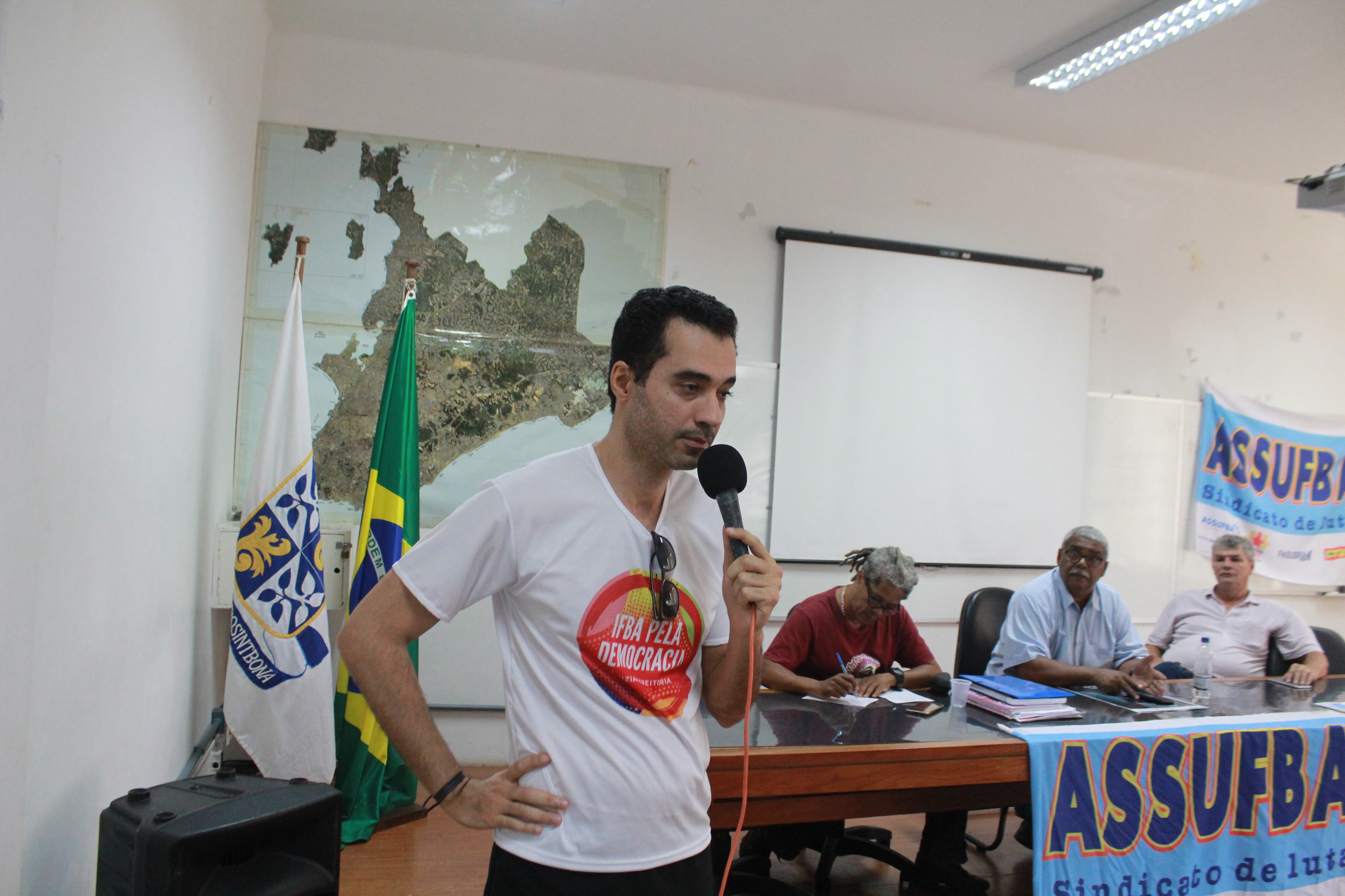 O Coordenador de Comunicação da ASSUFBA, Antonio Bomfim, também comentou a respeito da trajetória da Greve: “Mesmo em um dia difícil, fomos ao HUPES mobilizar a população”. Ele falou também a respeito da conjuntura política atual, de ataques e ameaças vindas por parte do governo Bolsonaro aos servidores públicos. “É preciso estar bem informado neste momento de ataques”, completou.