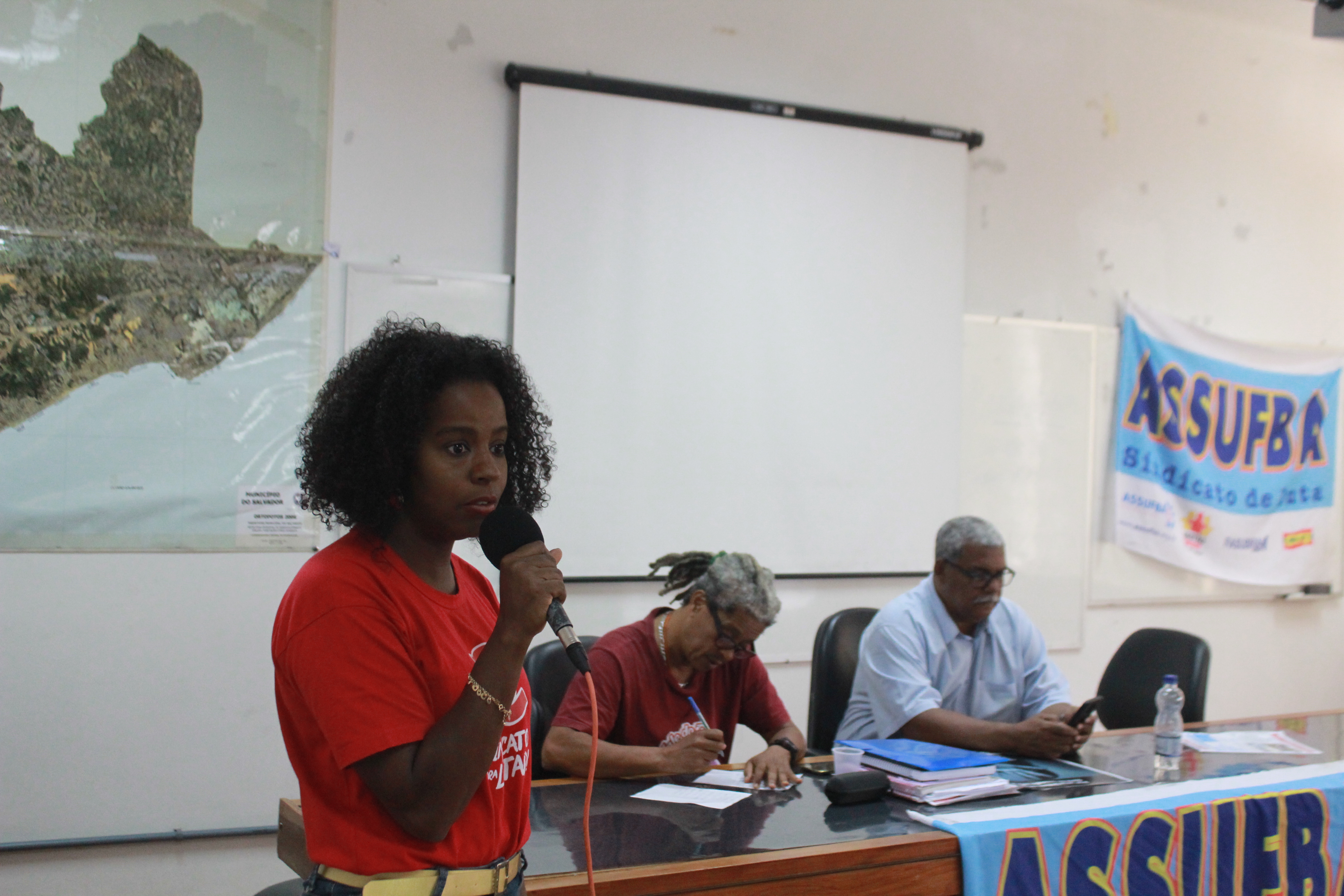 Após as falas da mesa, foi aberto o espaço para debate e complemento por parte dos servidores presentes. Os Técnico-Administrativos lembraram o importante papel prestado pelo Sindicato, a necessidade de mobilizar a todos e de continuar na luta contra o governo que tanto persegue a categoria. A representante da Seção Sindical do COM, Radinei Santos, pontou a força do Sindicato: “Sindicato sem o povo não é sindicato, o Sindicato somos nós”. A Coordenadora de Políticas Sociais e Antirracista da ASSUFBA, Eliete Gonçalves, salientou a importância dos serviços prestados pelo Hospital Universitário. “Estivemos no HUPES para conscientizar a população sobre os ataques, mas não podemos esquecer de valorizar os atendimentos dos profissionais”, concluiu.
