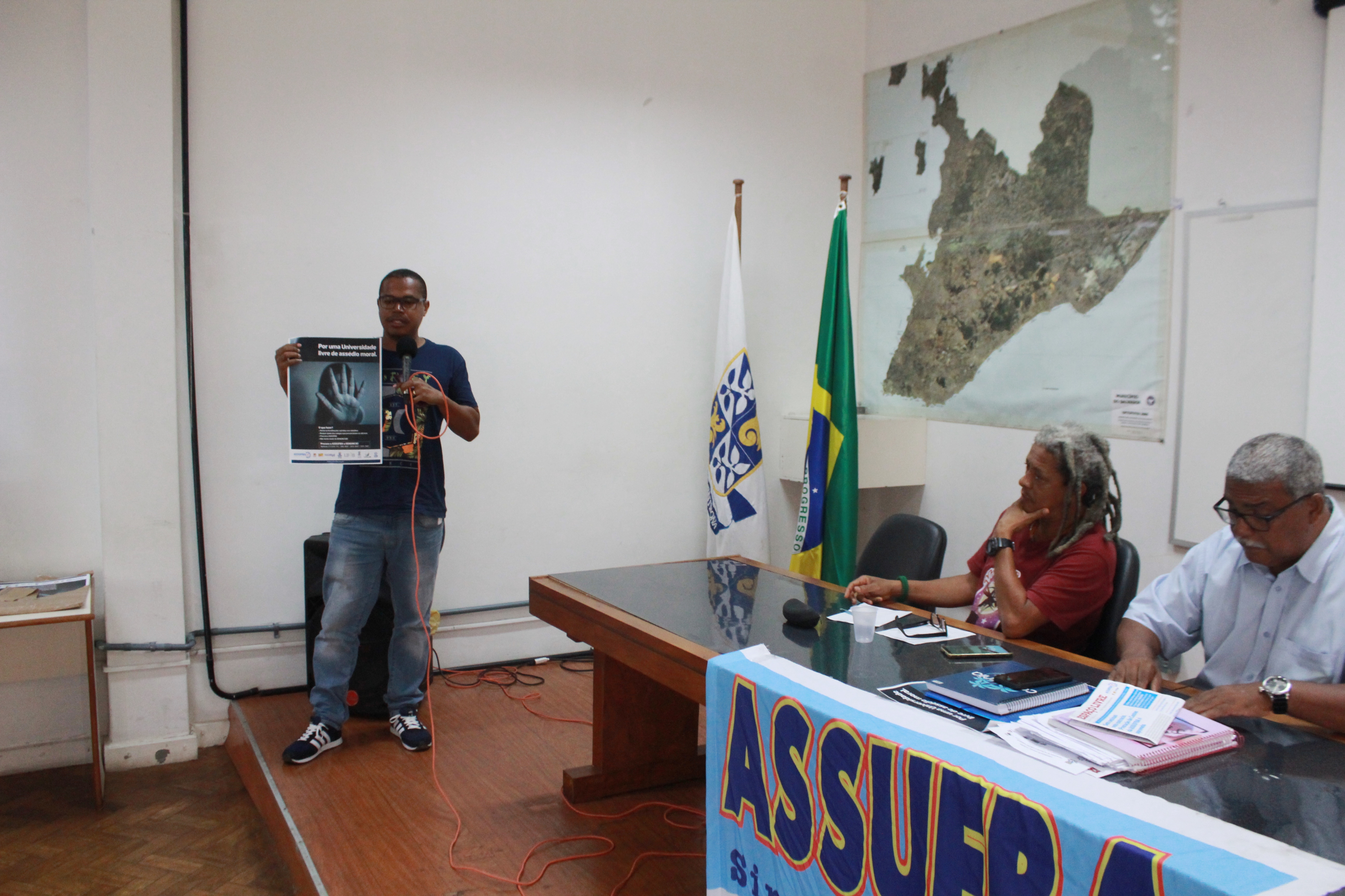 Outro tema discutido durante a realização da Frente foi a respeito das inúmeras denúncias de assédio moral sofridas pelos servidores e trabalhadores da UFBA. A Coordenação da ASSFUBA lembrou a campanha contra o assédio que vem sendo praticada pelo Sindicato, com intuito de conscientizar a toda comunidade universitária. Atualmente, a UFBA não possui um canal para resolução destes casos. Tendo em vista a necessidade, a ASSUFBA produziu um material contra os casos de assédio vividos na Universidade e disponibilizou o Sindicato para ser um portal de denuncia. O Sindicato ressalta a importância de se criar e praticar Políticas contra os casos de assédio na Universidade.