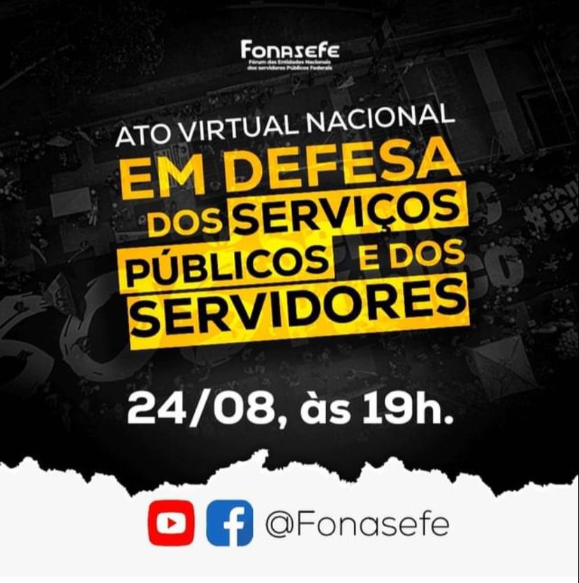 A ASSUFBA convoca a categoria para participar do Ato Nacional Virtual em Defesa dos Serviços Públicos e dos Servidores, que acontece nesta quarta-feira (24/08), às 19h. A FASUBRA vai transmitir a atividade através da página do Facebook.