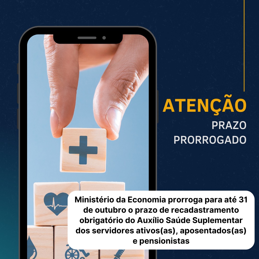 Ministério da Economia prorroga para até 31 de outubro o prazo de recadastramento obrigatório do Auxílio Saúde Suplementar dos servidores ativos(as), aposentados(as) e pensionistas
