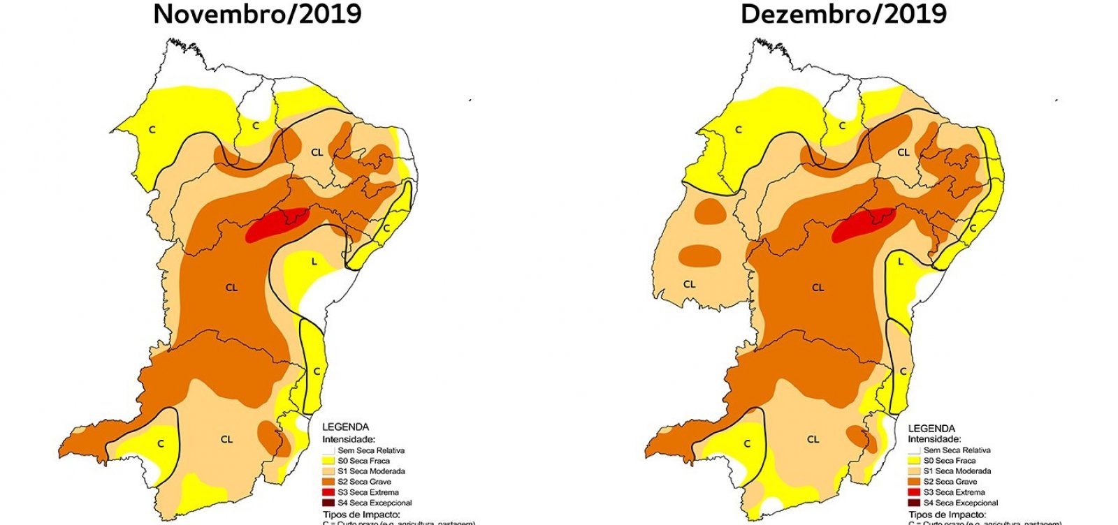 Dados do Monitor de Secas alertam para o aumento da seca grave na Bahia, nas regiões oeste e centro-leste do Estado, perto da Chapada Diamantina. As informações são da ANA (Agência Nacional de Águas). A situação foi registrada entre novembro de dezembro de 2019.