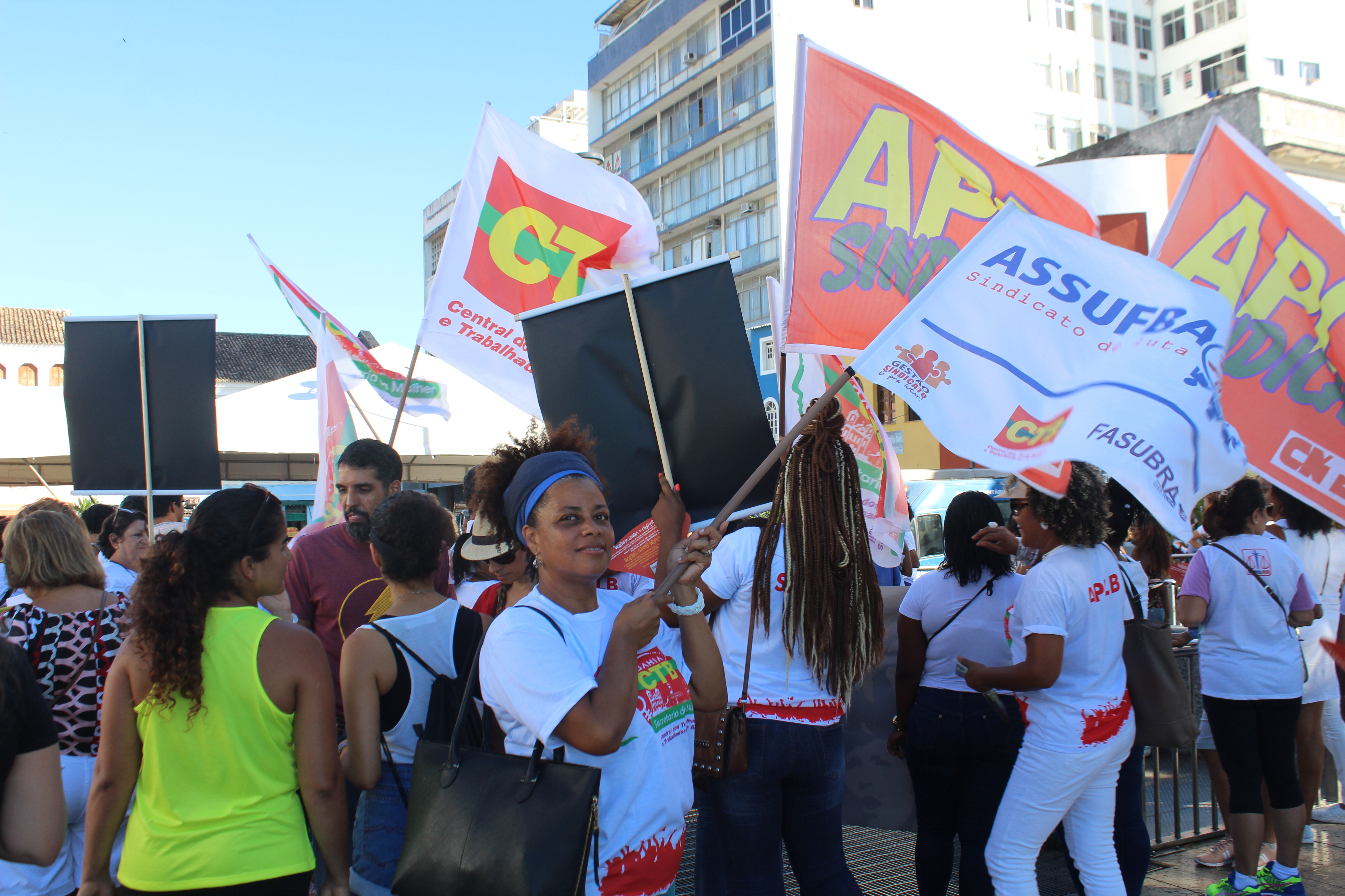 Junto à CTB (Central dos Trabalhadores e Trabalhadoras do Brasil), a ASSUFBA Sindicato marcou presença na marcha das mulheres, ocorrida em 8 de março, Dia Internacional da Mulher. A caminhada saiu da praça da Municipal e tomou as ruas do Centro de Salvador.