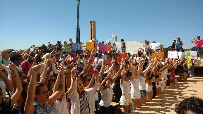 Cerca de 4 mil mulheres realizaram no domingo (29), pela manhã, em Brasília, a “Marcha das Flores – 30 Contra Todas”, pelo fim da cultura do estupro, o machismo e todo tipo de violência contra a mulher. As manifestantes percorreram a Esplanada dos Ministérios e finalizaram o ato em frente ao STF, onde depositaram flores na Estátua da Justiça pedindo mais rigor na legislação contra a violência sexual.