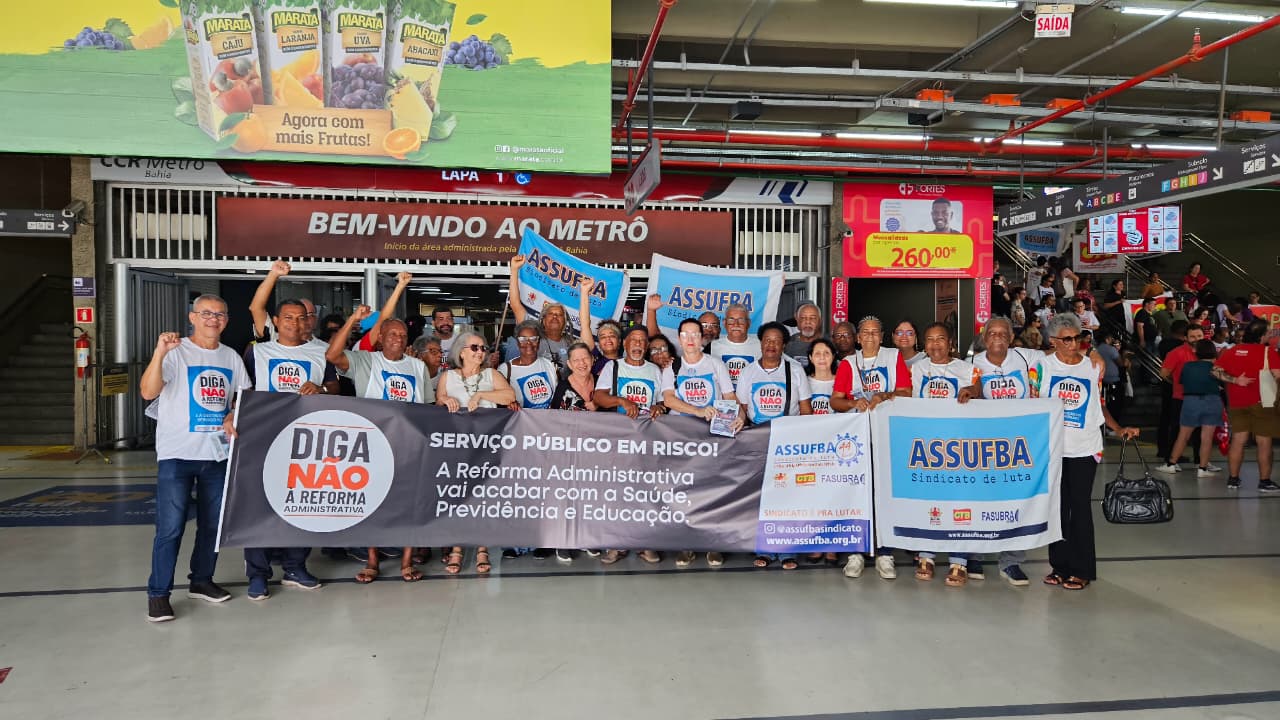 O primeiro dia da Paralisação Nacional de 48h começou com muita força e unidade na manhã desta quarta-feira (29/10), na Estação da Lapa. A ASSUFBA Sindicato, junto com diversas entidades representativas do serviço público, marcou presença em um grande ato contra a Reforma Administrativa (PEC 38).