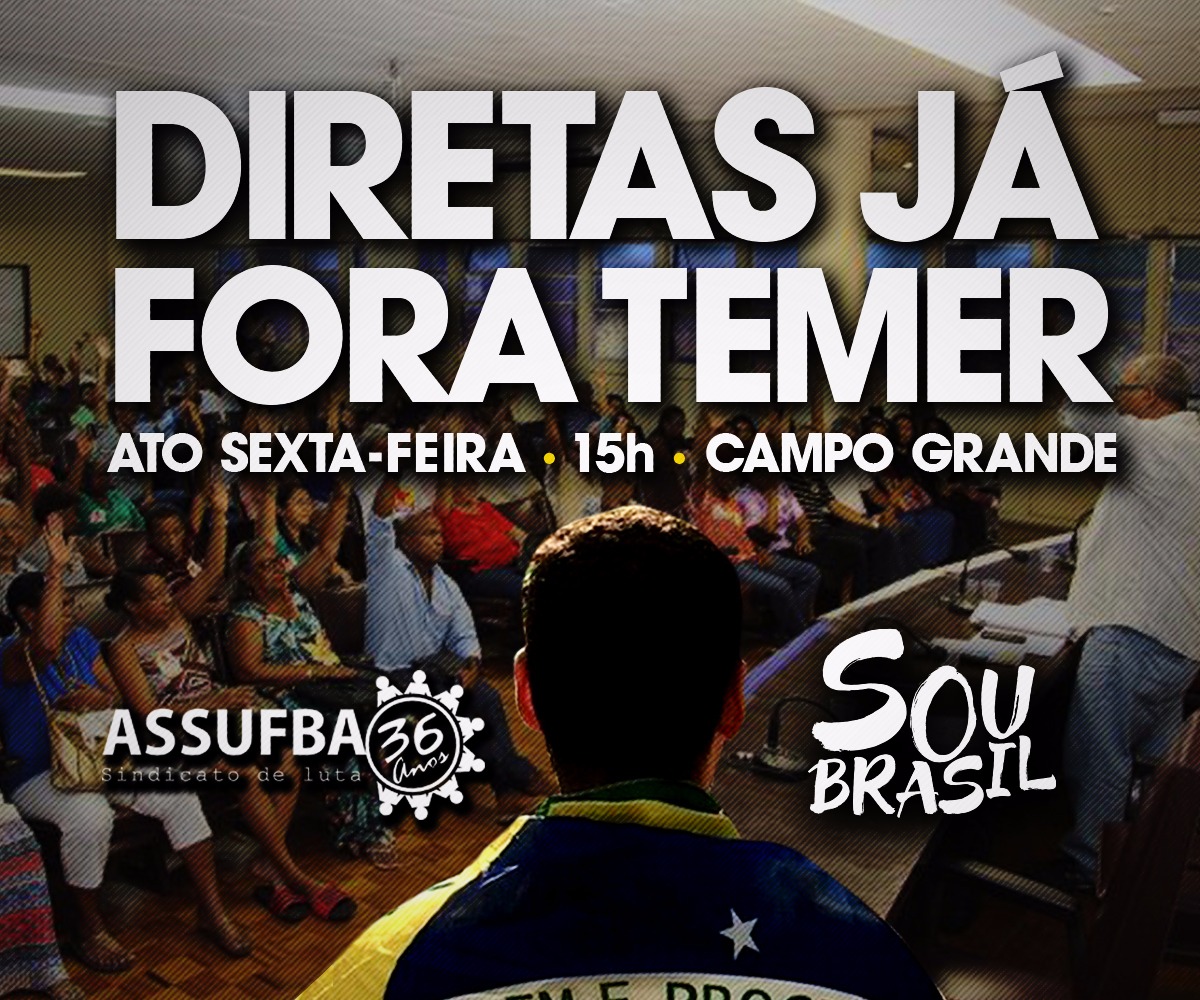 Nesta sexta tem manifestação pelo Fora Temer e Diretas já em Salvador. ASSUFBA participa