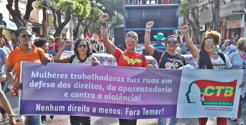Rosa disse também que neste dia as mulheres trabalhadoras não se unem só para celebrar a data e sim para defender a democracia. “Não vamos aceitar esse golpe, não admitimos uma reforma na Previdência que seja contra a vida da sociedade, em especial contra a vida das mulheres. Esse governo golpista desconsidera a realidade das mulheres em nosso país, nas triplas jornadas de trabalho”, concluiu.