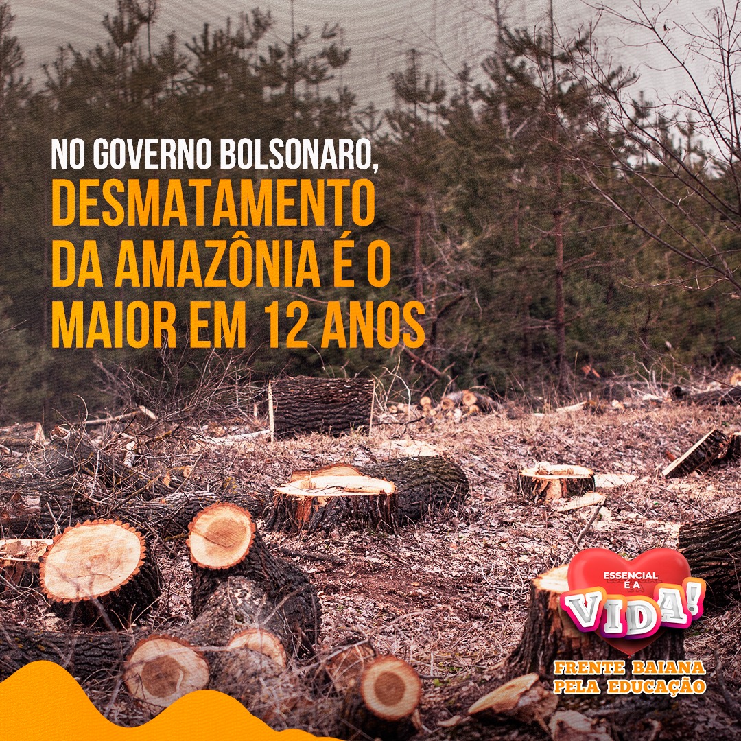 🔥 Em 2019 e 2020, dois primeiros anos de governo, o desmatamento na Amazônia alcançou o maior patamar desde 2008, com um aumento de 67% na área de floresta destruída.