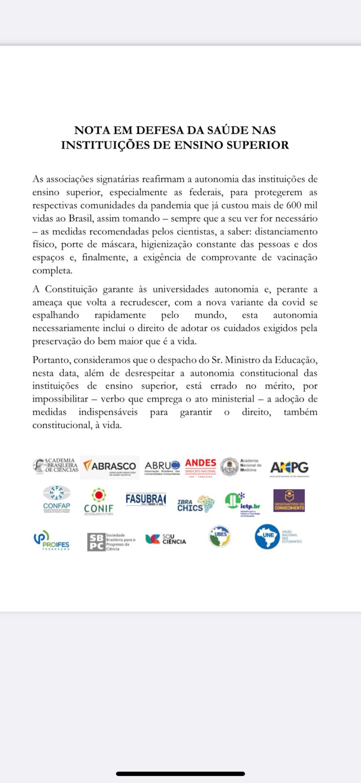 Nota em defesa da saúde nas instituições de ensino superior Notíciasascom30 de dezembro de 2021, 4 anos ago00296