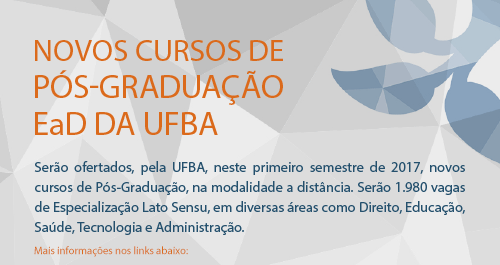 Novos cursos de pós-graduação EaD da UFBA. Inscrições a partir do dia 06/02